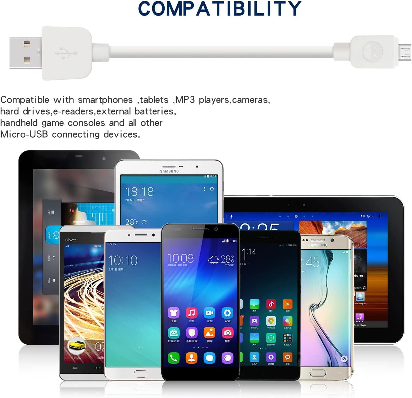 Compatible: Most Android and Windows phones, tablets and many other devices, including GPS devices/batteries/Bluetooth speakers/wireless keyboards/cameras/camcorders/game consoles/hard drives/e-readers/printers