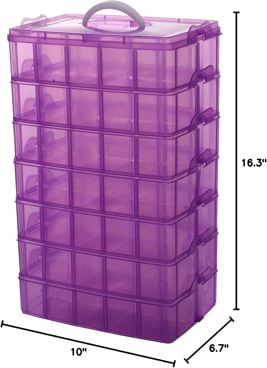 Sooyee 7 Layers Stackable Storage Container, 70 Adjustable Compartments Stackable Storage Container for Kids Toys, Art Crafts, Jewelry, Supplies, Mini Case & Letter Sticker Included,Clear,Purple