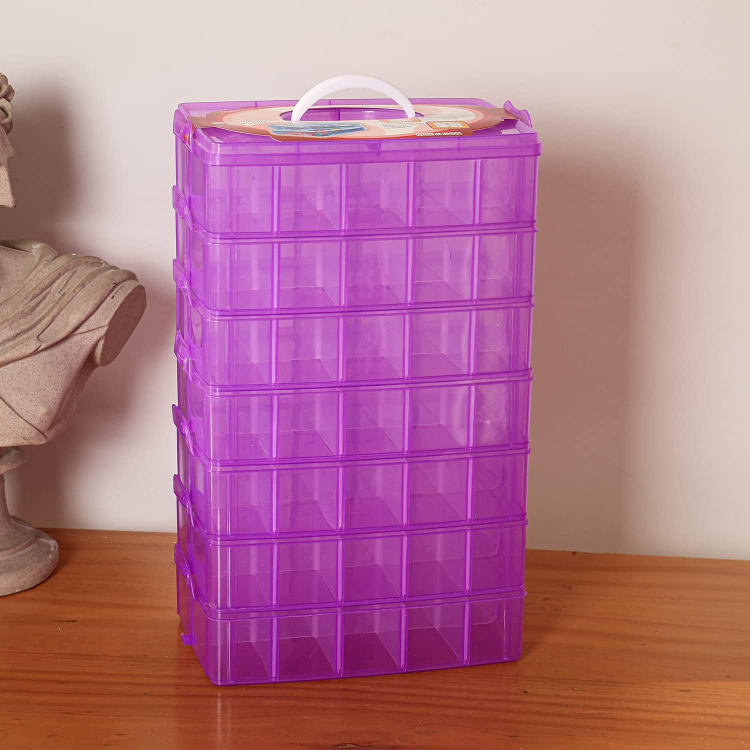 Sooyee 7 Layers Stackable Storage Container, 70 Adjustable Compartments Stackable Storage Container for Kids Toys, Art Crafts, Jewelry, Supplies, Mini Case & Letter Sticker Included,Clear,Purple