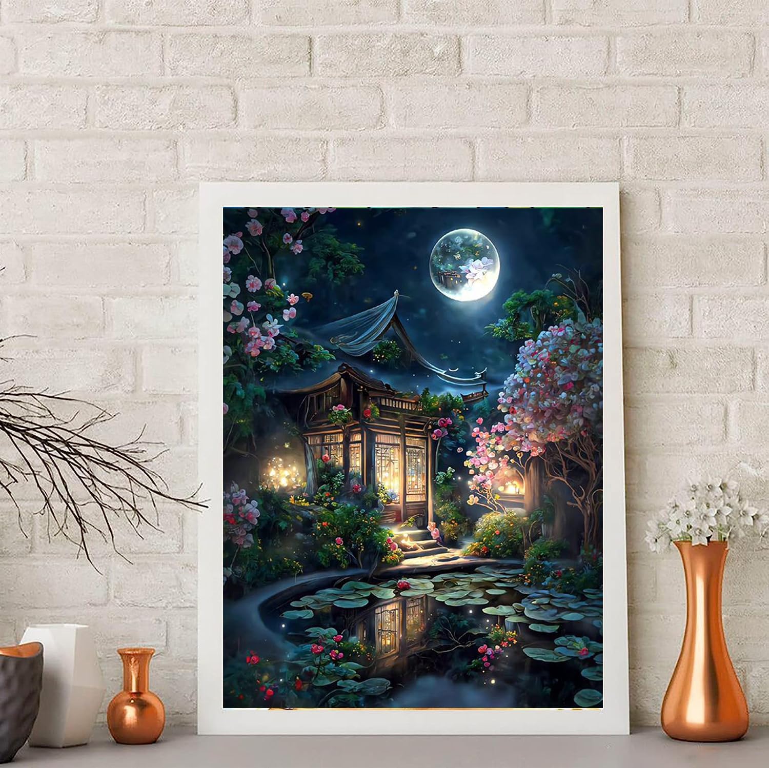 SOTYIOO Diamond Painting Kits for Adults.Courtyard Diamond Art Full Drill Round Gem Art 5D Diamond Dots Suitable Home Wall Decor 12x16inch