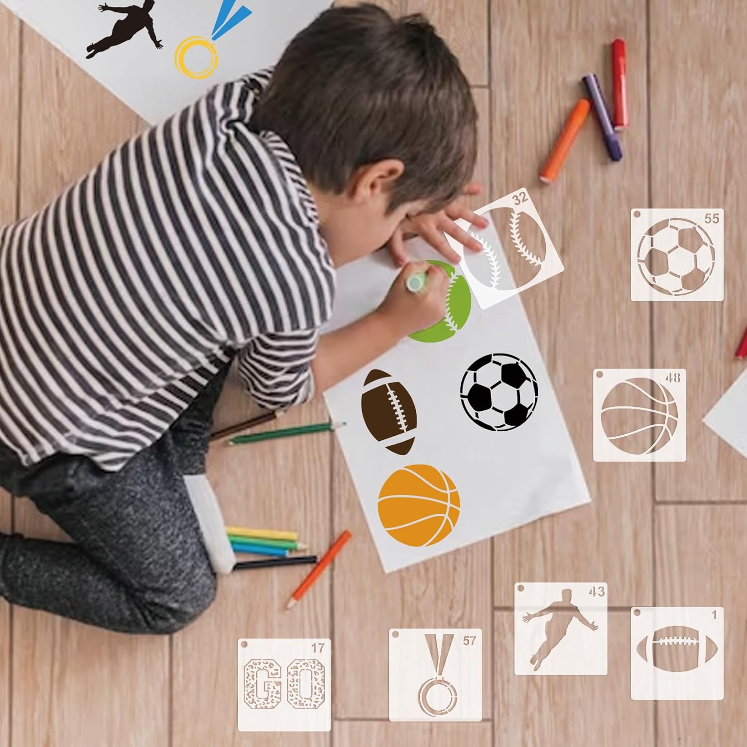 What You Get: sport stencils for painting include 60pcs 3x 3 inch small spray paint stencils with football, volleyball, soccer ball, basketball, golf patterns ect. Rich drawing style to create any DIY art projects, share your creativity and imagination with kids, friends and family.
