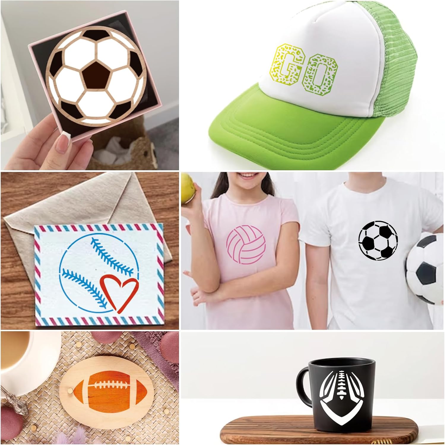 Sport Stencils for Painting on Wood Burning Patterns Football Stencils Volleyball Stencil Soccer Ball Paint Template on Art Craft Canvas Wall Fabric Rock (60pcs Sport)
