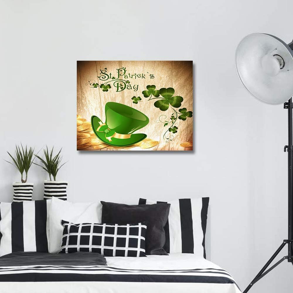 St. Patrick Day Painting by Number Kit On Canvas for Beginners Easy Acrylic on Canvas with Paints and Brushes Unique Gift Leprechaun Hat and Gold Coins Shamrocks Retro Design 16×20 Inch