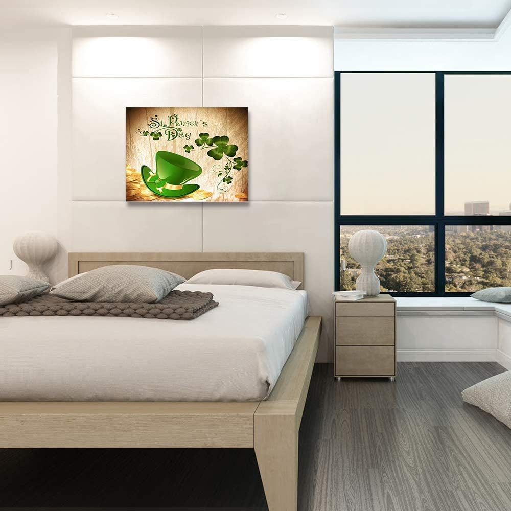 St. Patrick Day Painting by Number Kit On Canvas for Beginners Easy Acrylic on Canvas with Paints and Brushes Unique Gift Leprechaun Hat and Gold Coins Shamrocks Retro Design 16×20 Inch