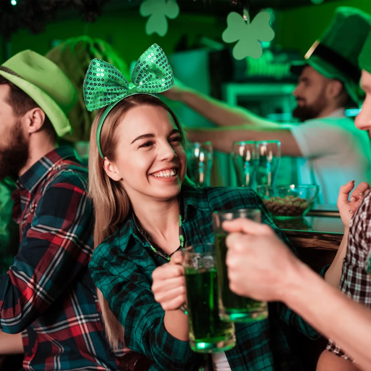 St Patricks Day Headband, 4Pcs Glitter Green Shamrock Clover Headbands Kids Sparkly Green Bow Hairband for Women Girls Saint Patrick’s Day Irish Party Accessories