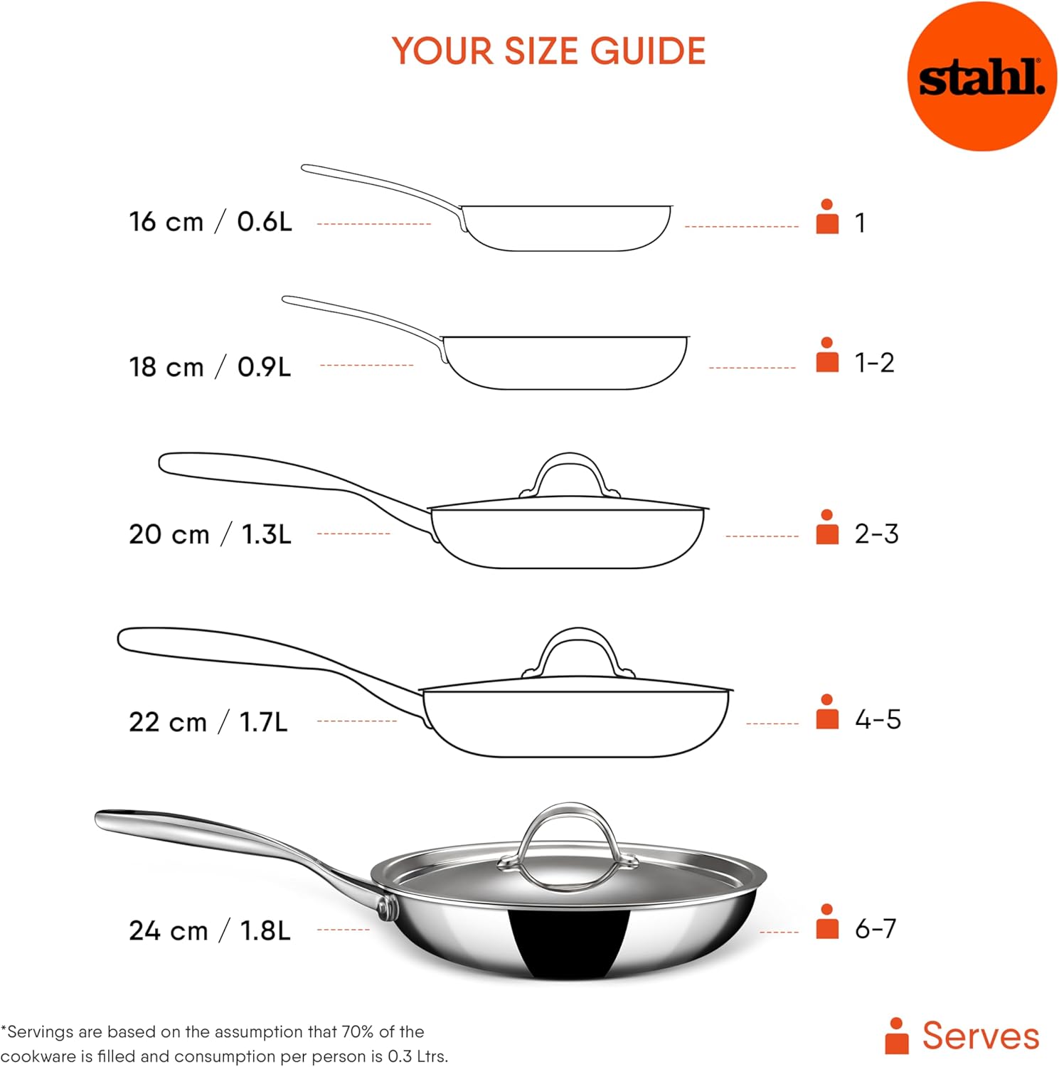 Stahl Triply Stainless Steel Artisan Nevrstick Frypan with Lid, 5424, 24cm, 1.8 Liters (Serves 6 People)