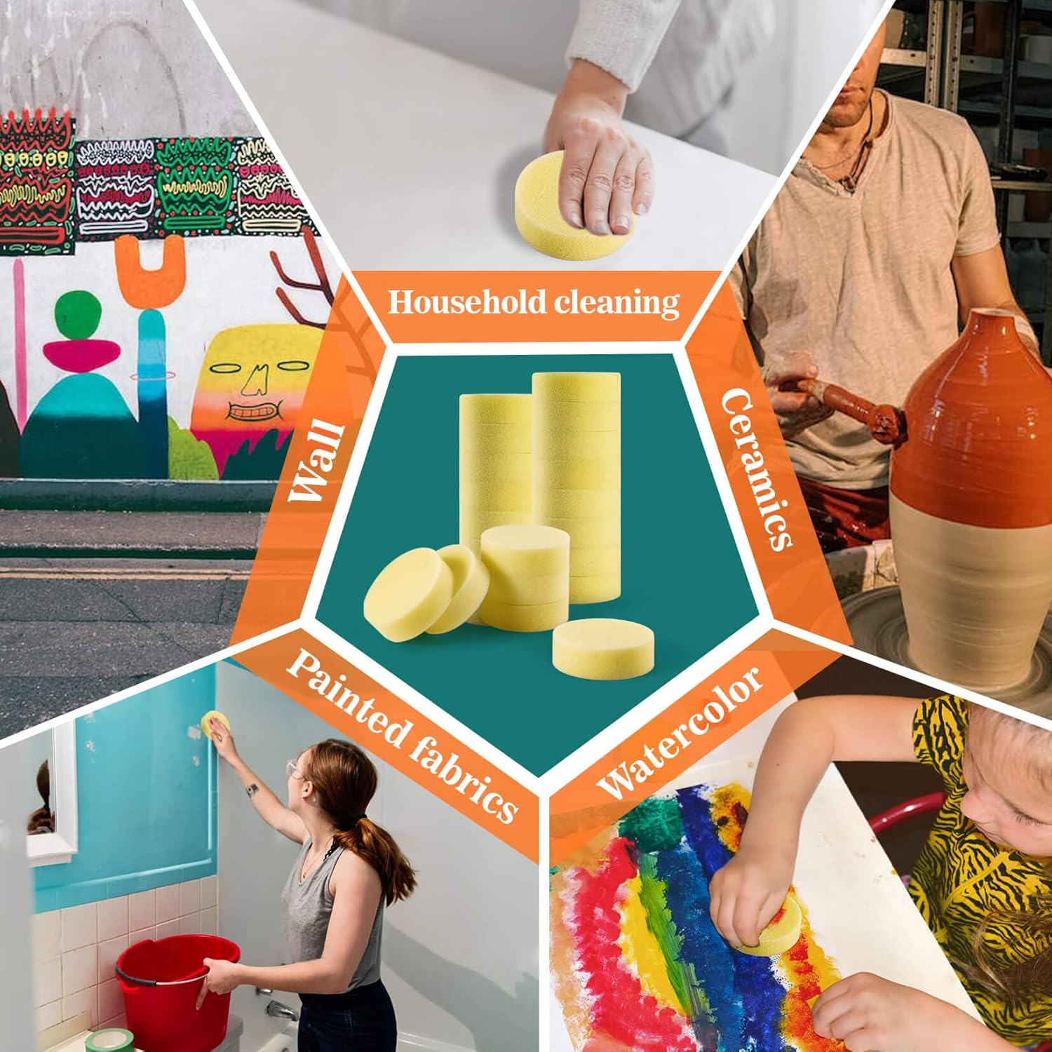 Sukh 24PCS Round Painting Sponge – Ceramic Sponge Artist Watercolor Sponge Applicator for Pottery Art Craft, Tiles, Potteries, Ceramics, Walls, Household Use.