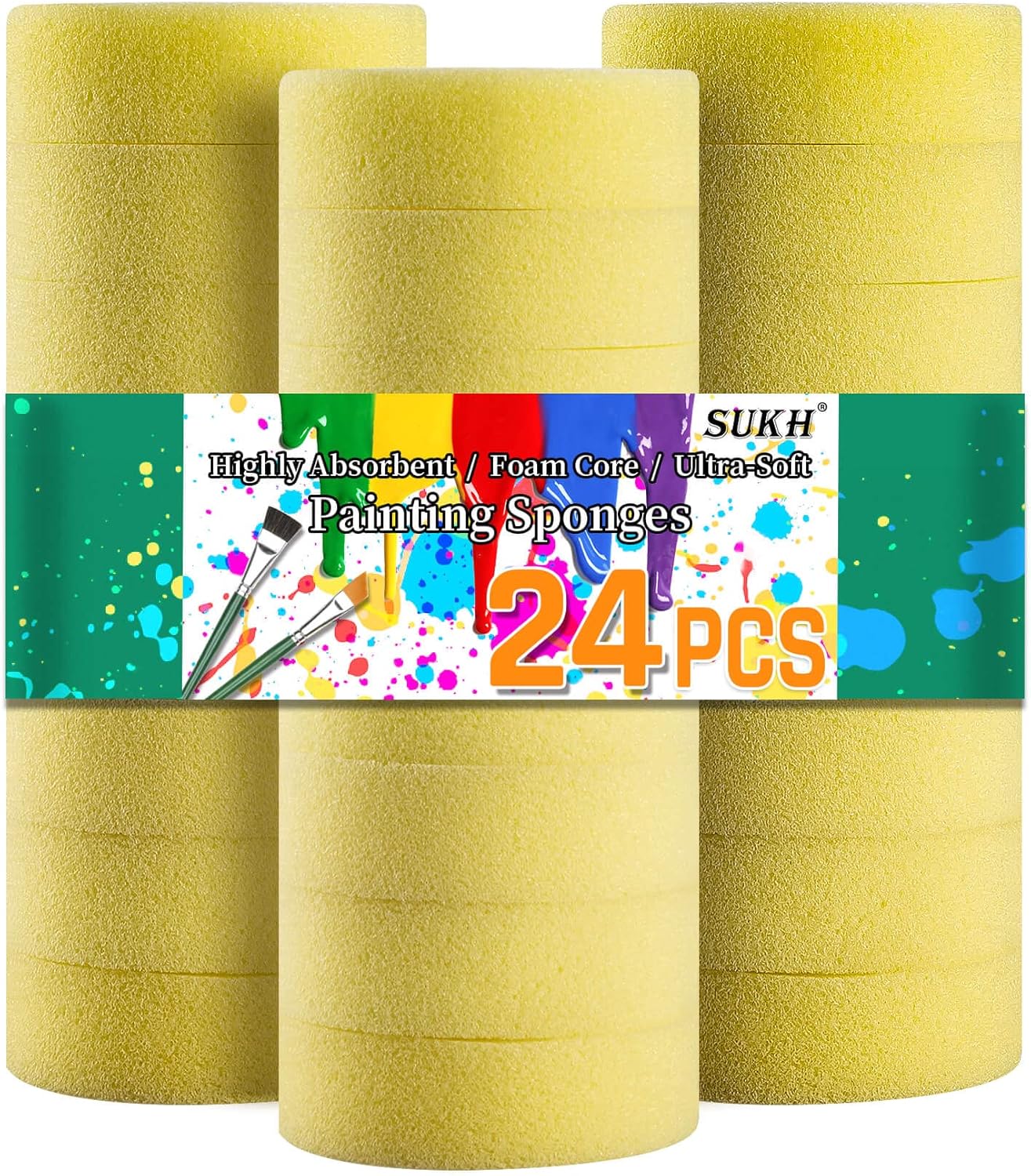Sukh 24PCS Round Painting Sponge – Ceramic Sponge Artist Watercolor Sponge Applicator for Pottery Art Craft, Tiles, Potteries, Ceramics, Walls, Household Use.