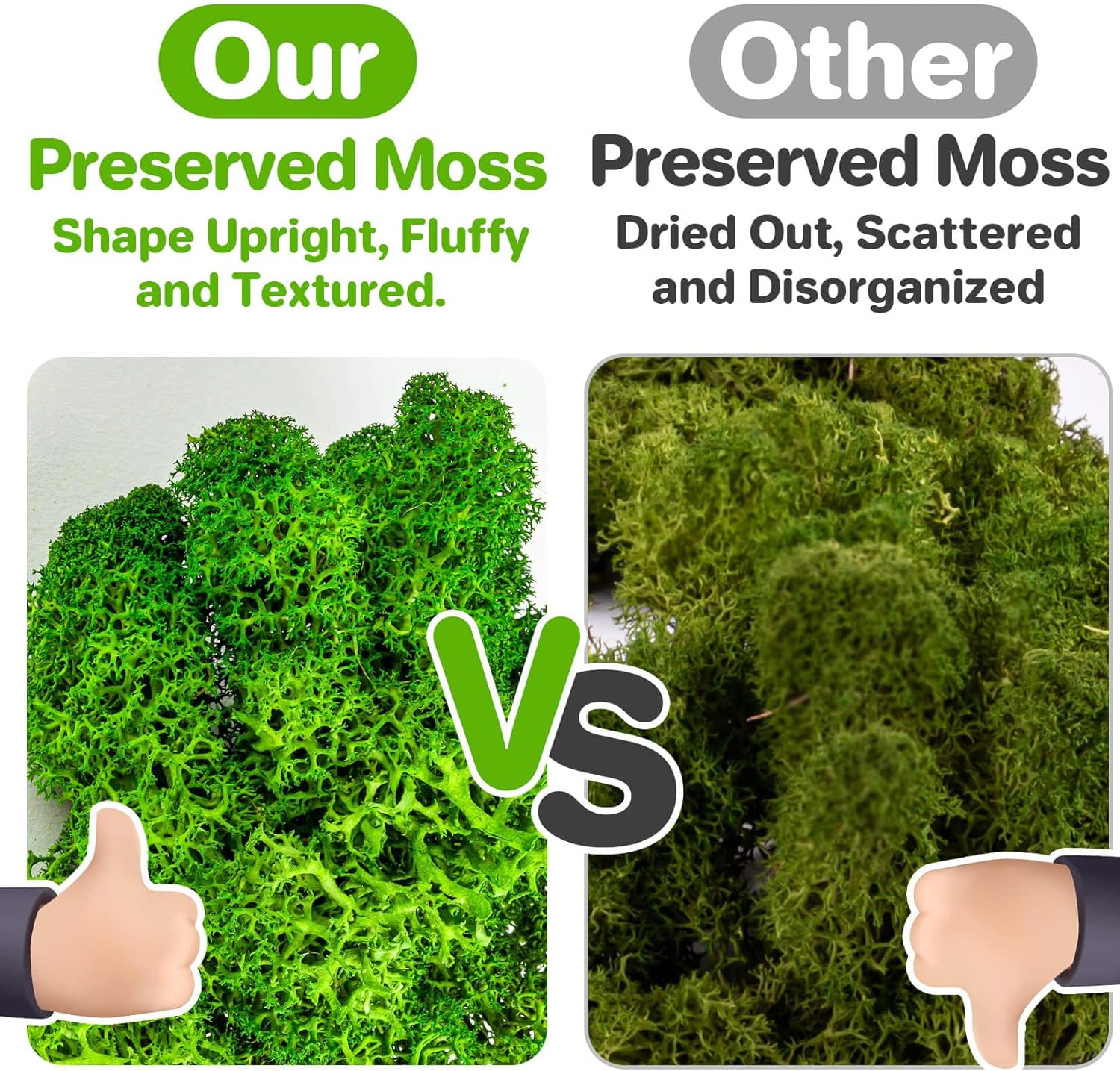DURABLE AND LONG-LASTING —The preserved moss is made of natural moss after air-drying and dyeing, which maintains the soft texture of moss itself and can be kept in its natural state for a long time, durable and long-term storage.