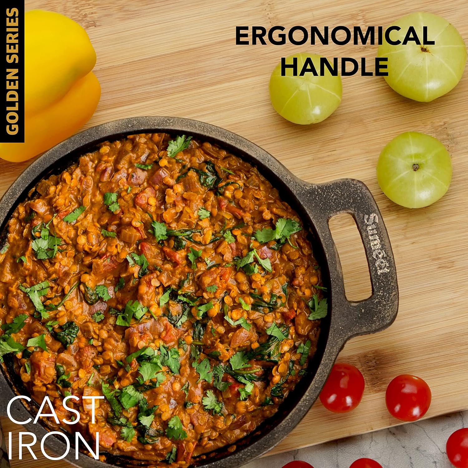 Sumeet Super Smooth Gold Series Pre Seasoned Cast Iron Small Kadai for Fry/Saute |950ml, 18.5cm 1.130kg.