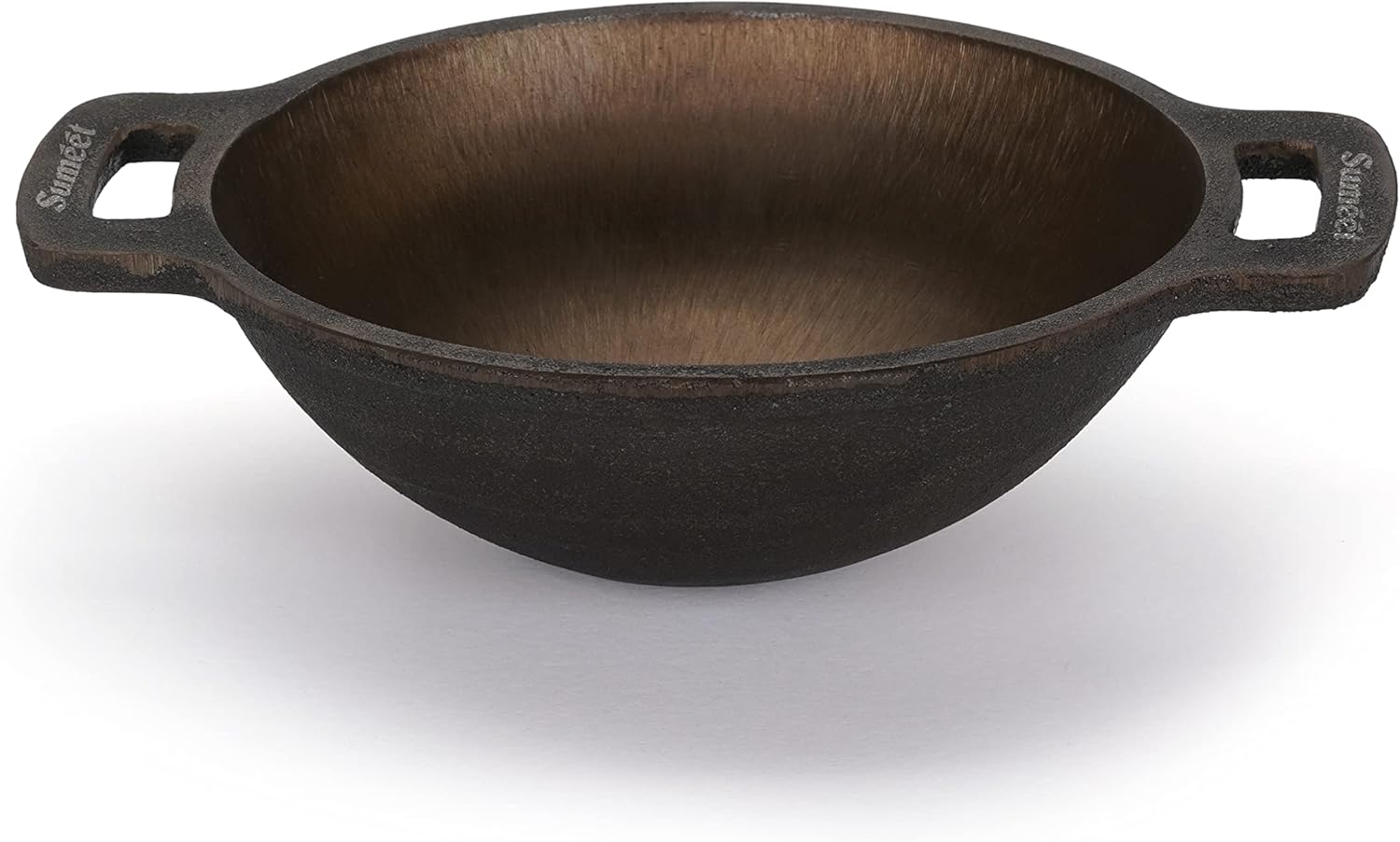 Sumeet Super Smooth Gold Series Pre Seasoned Cast Iron Small Kadai for Fry/Saute |950ml, 18.5cm 1.130kg.