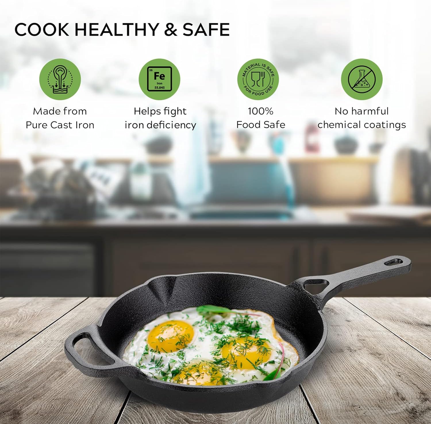 Toxin free cookware: Made from 100% Natural cast iron cookware, this cast iron Fry pan is a 100% Healthy cookware, food safe without chemicals, coatings or toxins