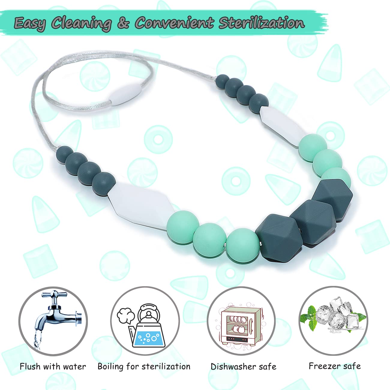 Teething Necklace for Baby and Mom to Wear, Sensory Chew Necklaces for Kids Silicone Chew Toys for Autistic Children or SPD ADHD Anxiety Nursing Biting, Oral Motor Teether Toys for Babies
