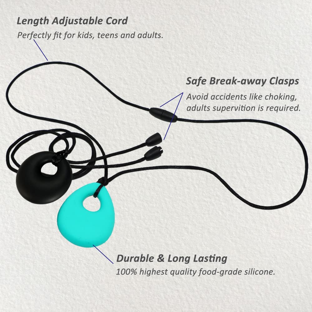 Flyaway silicone chew necklaces are designed for babies kids and adults with chew, anxiety, autism, ADHD, SPD, hand fidgeters and oral motor needs. Silicone necklace are the soft teether toys soothes the pain of teething for baby, is the perfect natural way to calm & improve focus, also the good tools for children to reduce fidgety ticks & behaviors such as biting, chewing…