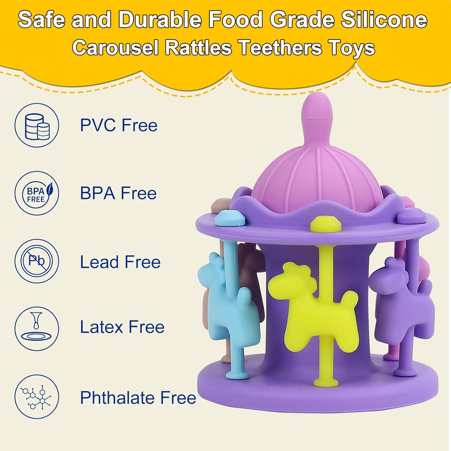 Teething Toys for Babies 0-12 Months, DDMY Baby Carousel Rattle Teether, Food Grade Silicone Baby Toys Teethers for Babies, Teething Relief Teether, Best Gift for Girl/Boy