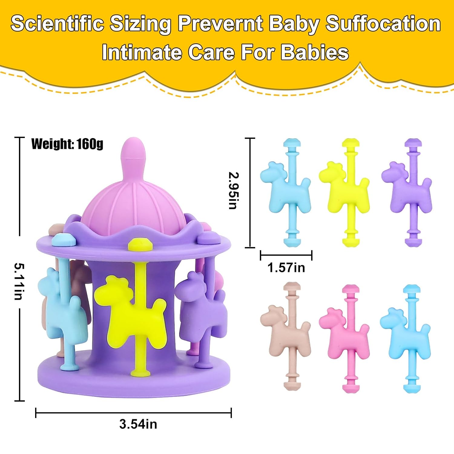 â–º [PRODUCT FUNCTION]: The carousel teether can better massage the gums and soothe teething pain more effectively, very soft to protect baby’s lips and gums, without any sharp edges to meet the needs of baby’s oral stage!