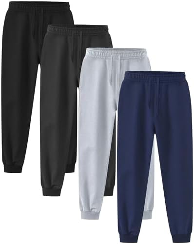 TELALEO 4 Pack Boys Sweatpants Active Athletic Jogger Pants Soft Cotton French Terry Little Big Kids
