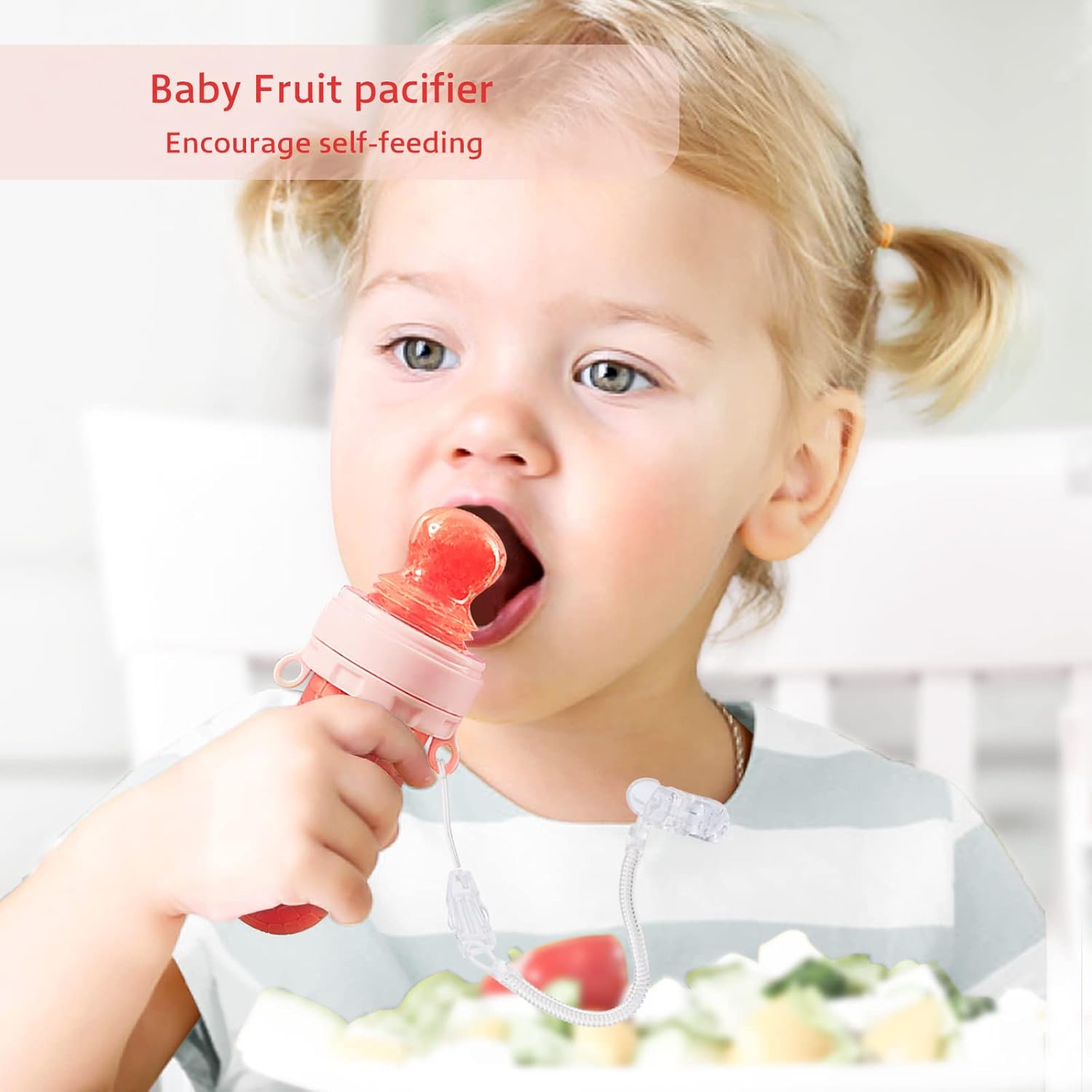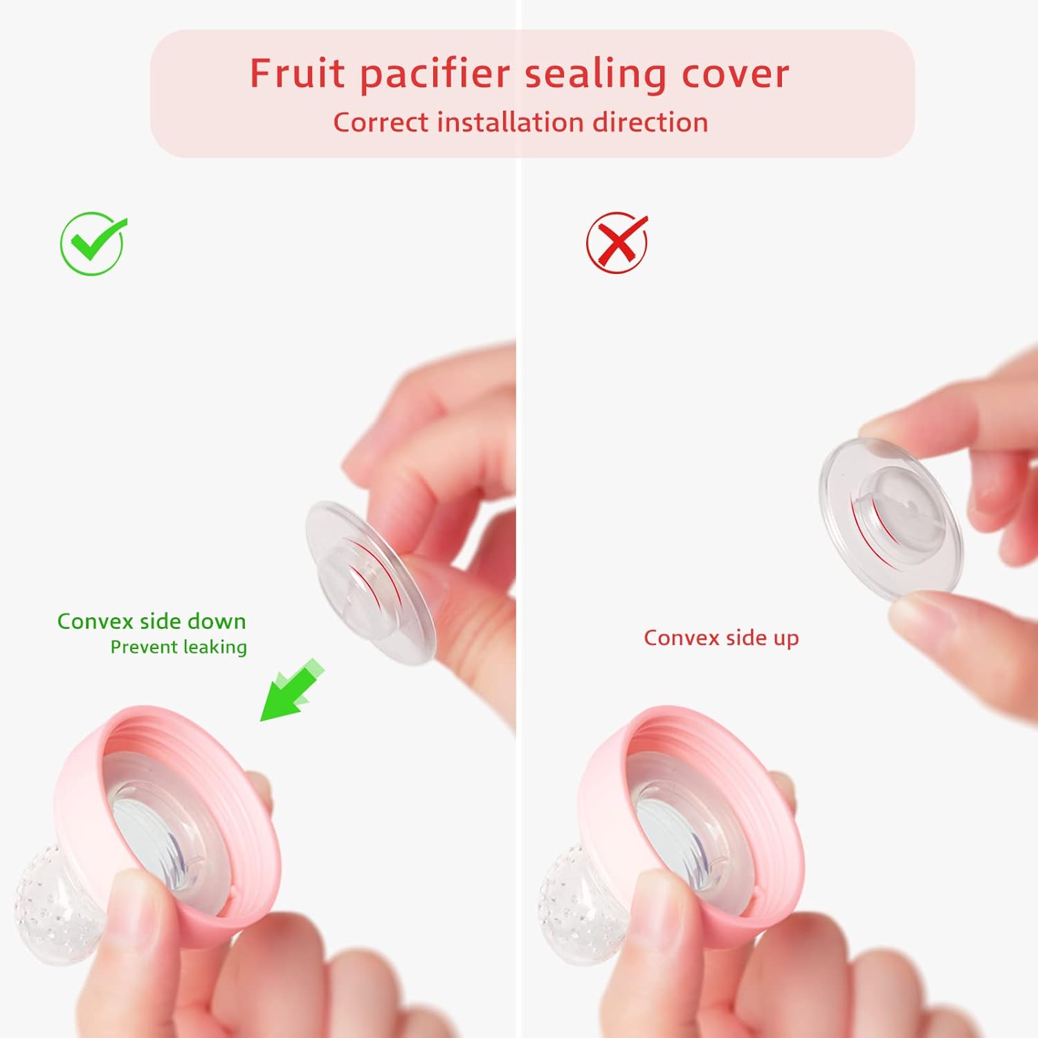 The food feeder come with a sealing cover and a pacifier clip to prevent food leakage and facilitate outdoor use. The pacifier clip can be clipped to the child’s clothes or stroller to prevent loss.