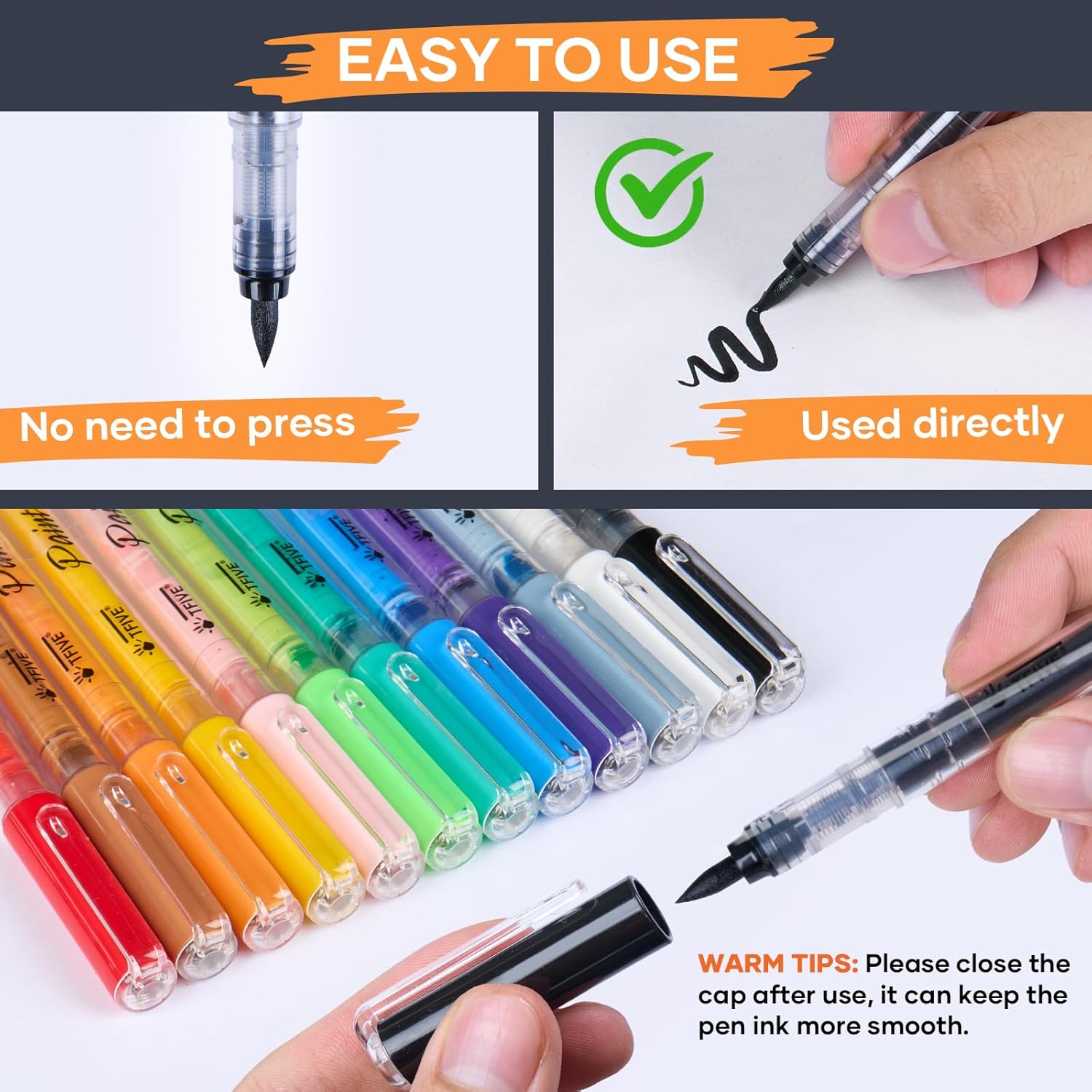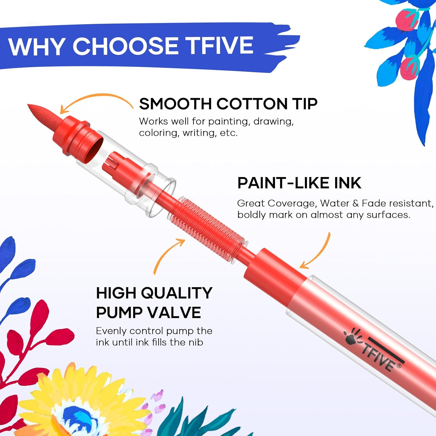 TFIVE Paint Marker Paint Pens, Acrylic Permanent Water-Based Brush Tip Marker, Quick Dry Waterproof Paint Marker Pens for Art, Drawing, Rock, Ceramic, Glass, Wood, Plastic, Metal, Canvas DIY Crafts