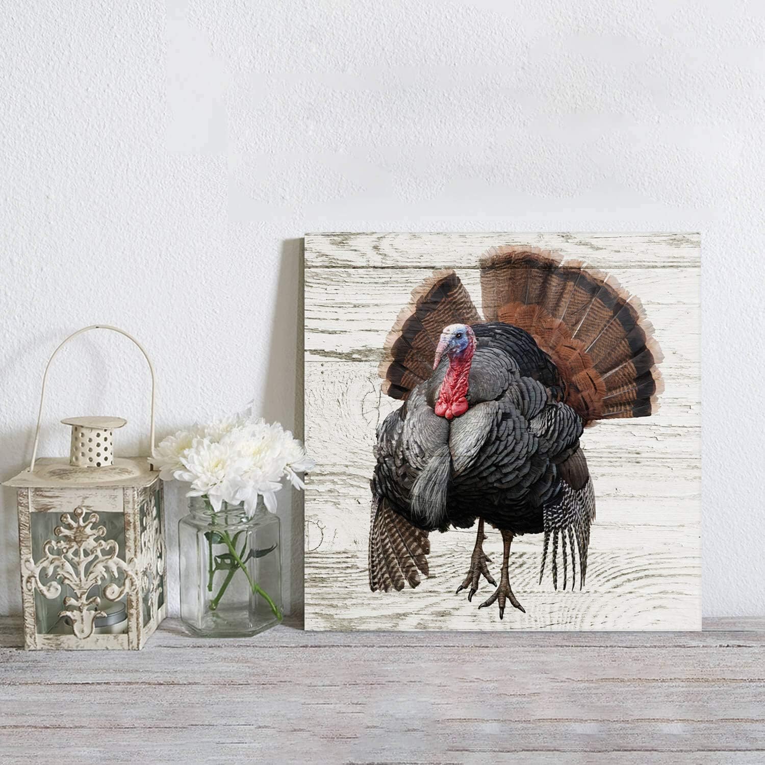 Thanksgiving Painting by Number Kit On Canvas for Beginners Easy Acrylic on Canvas with Paints and Brushes Unique Gift Farm Turkey Dilapidated Wood Grain 16×16 Inch