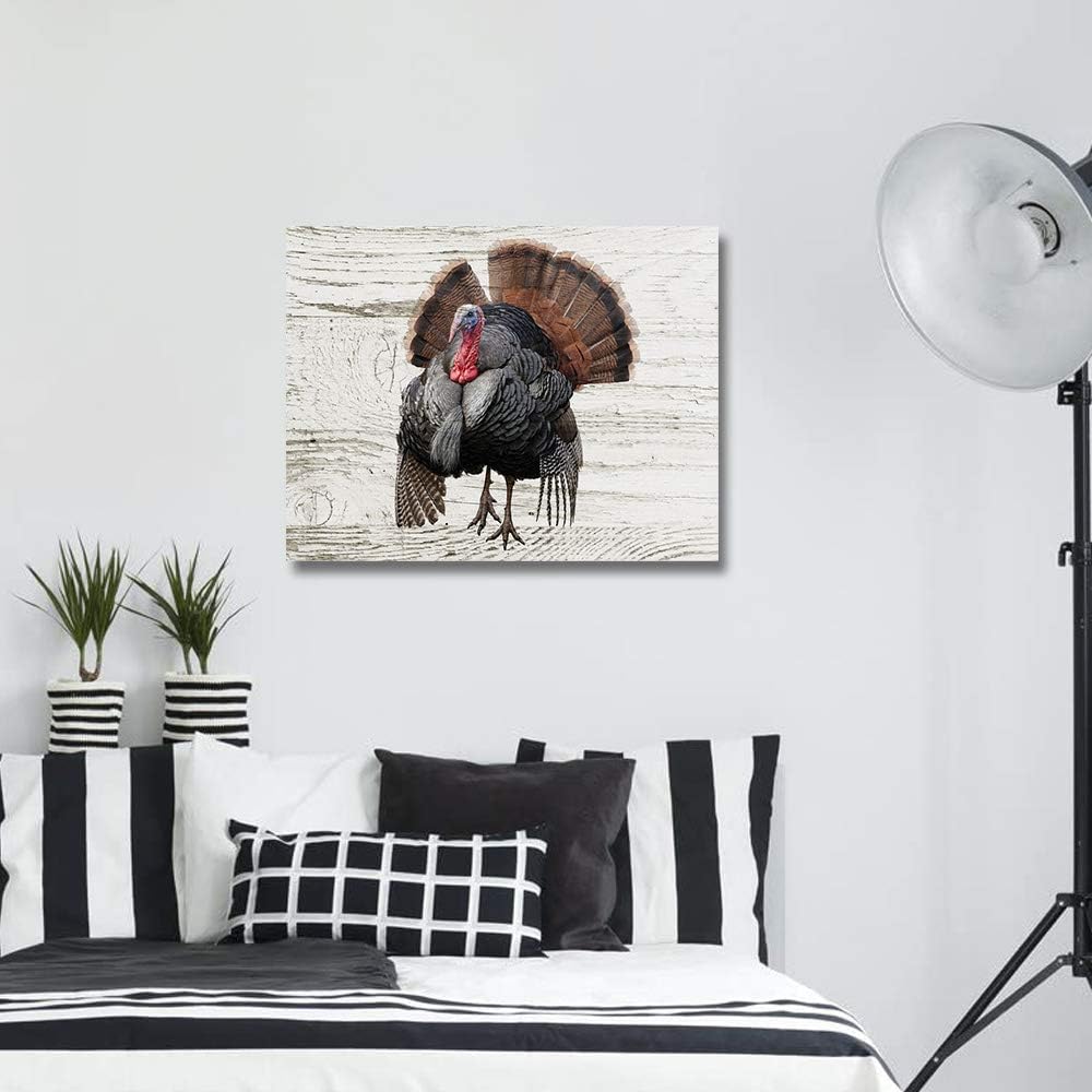 Thanksgiving Painting by Number Kit On Canvas for Beginners Easy Acrylic on Canvas with Paints and Brushes Unique Gift Farm Turkey Dilapidated Wood Grain 16×20 Inch