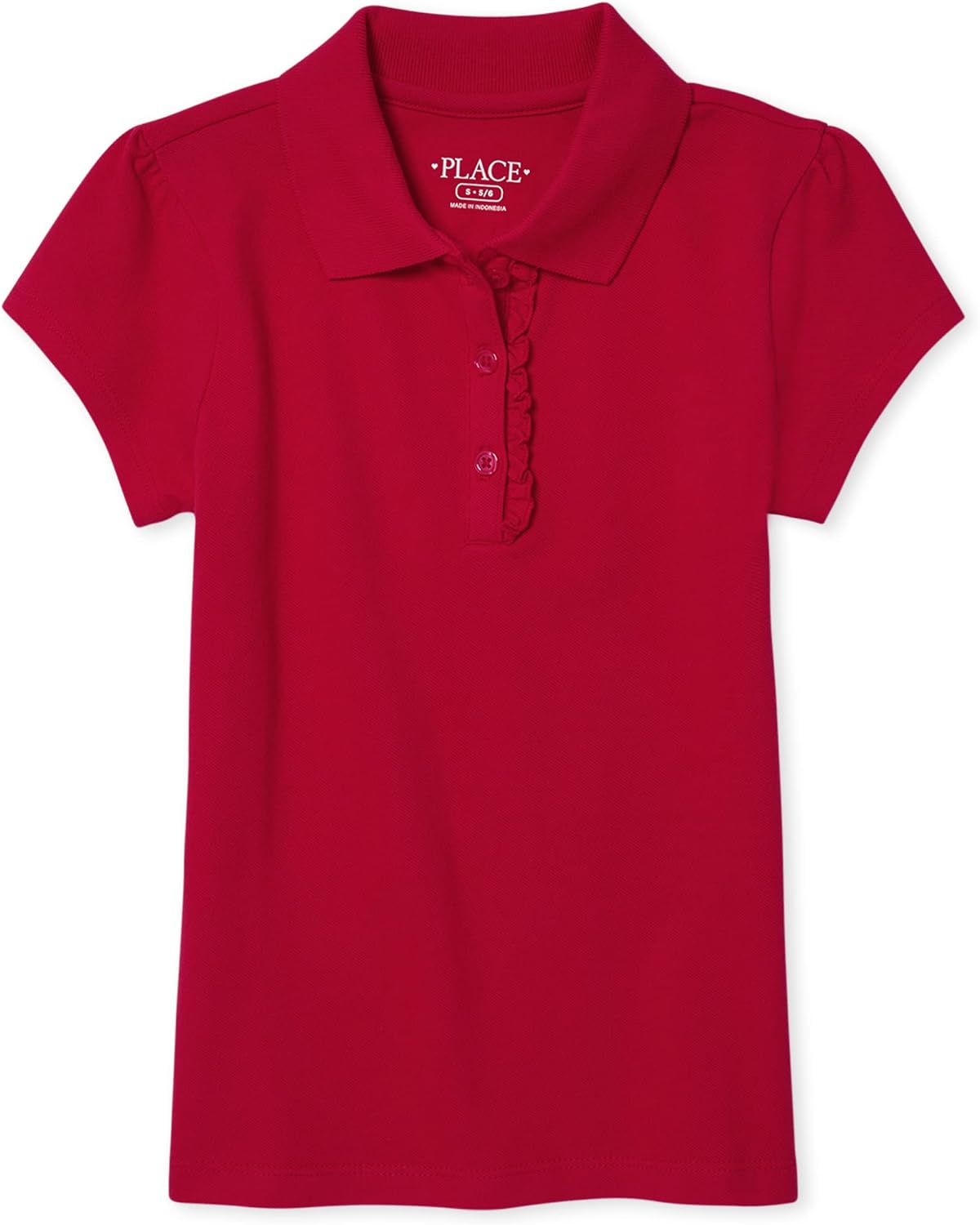The Children’s Place Girls’ Short Sleeve Ruffle Pique Polo