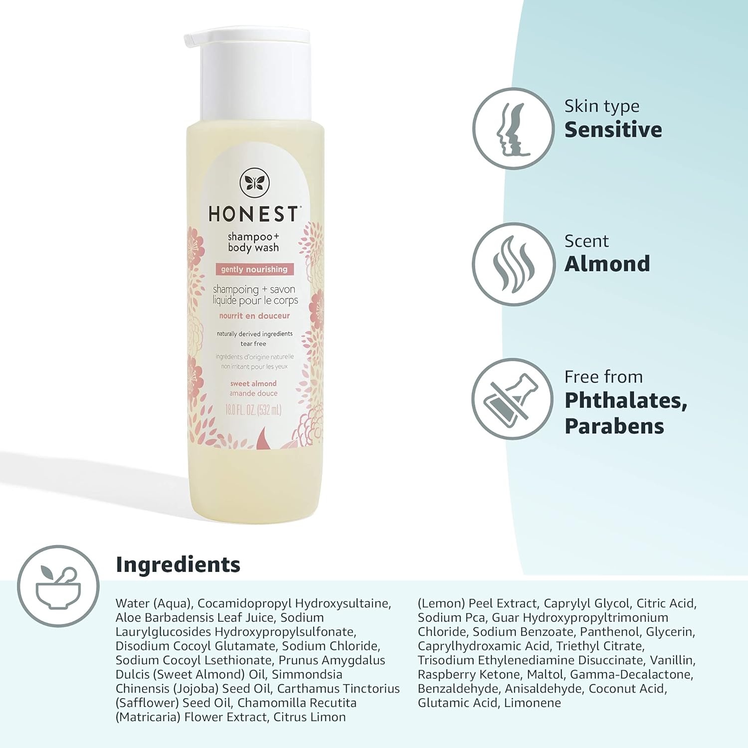 The Honest Company 2-in-1 Cleansing Shampoo + Body Wash | Gentle for Baby | Naturally Derived, Tear-free, Hypoallergenic | Sweet Almond Nourish, 18 fl oz