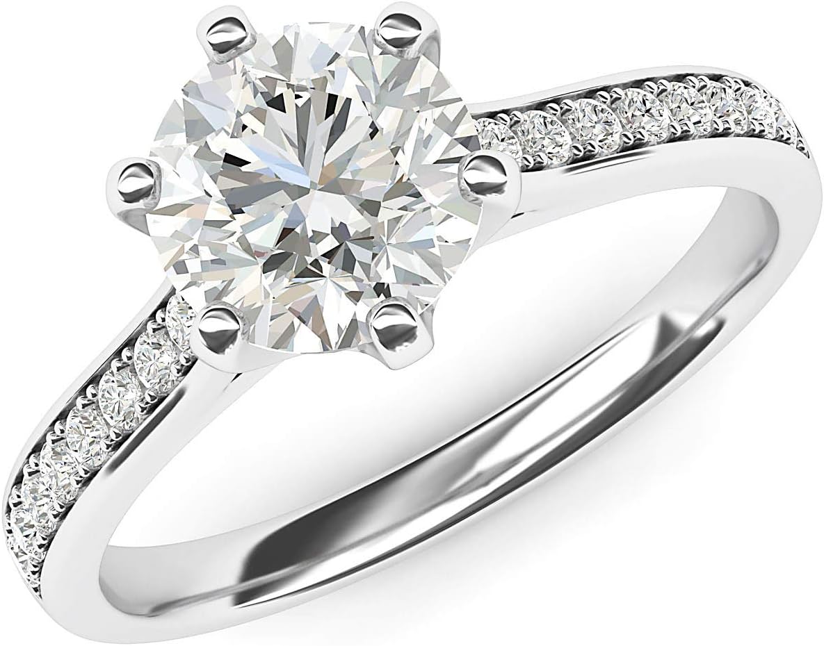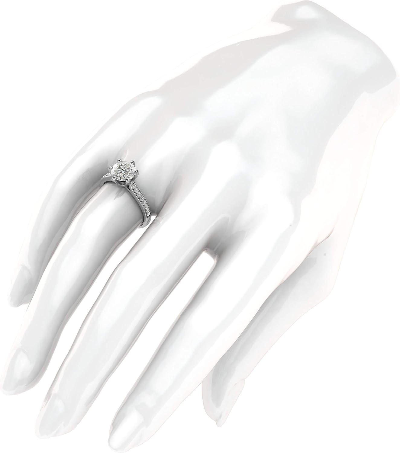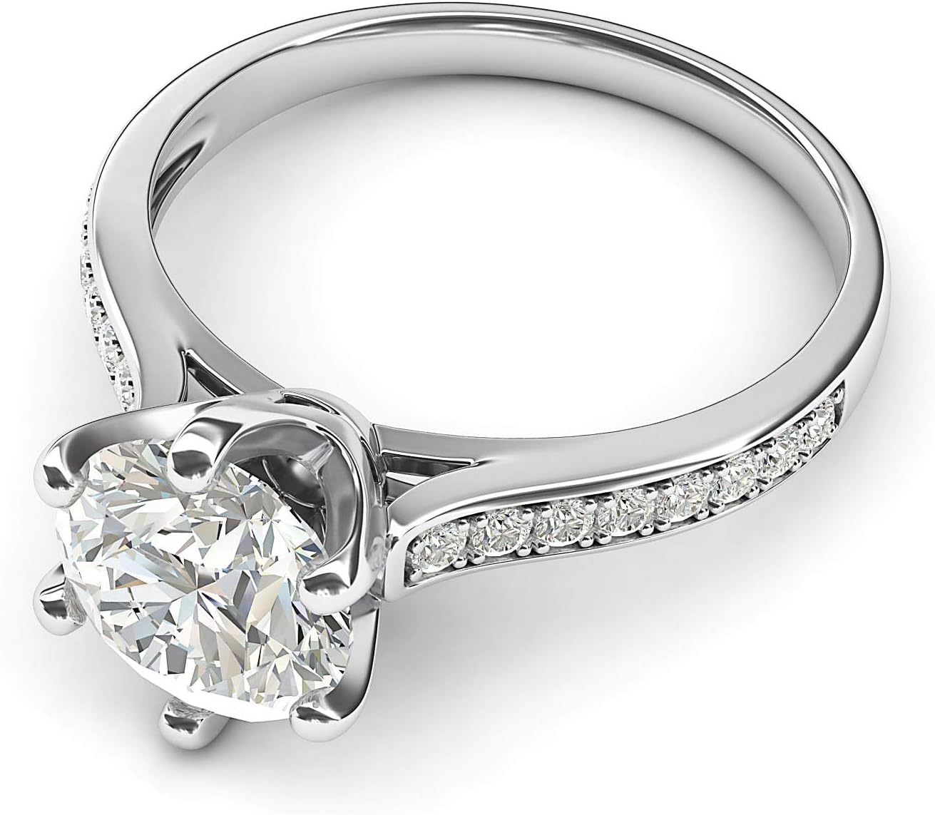THELANDA 14k White Gold 2 Carats Classic 6-Prong Simulated Diamond or Moissanite Engagement Ring Side Stones Promise Bridal Ring