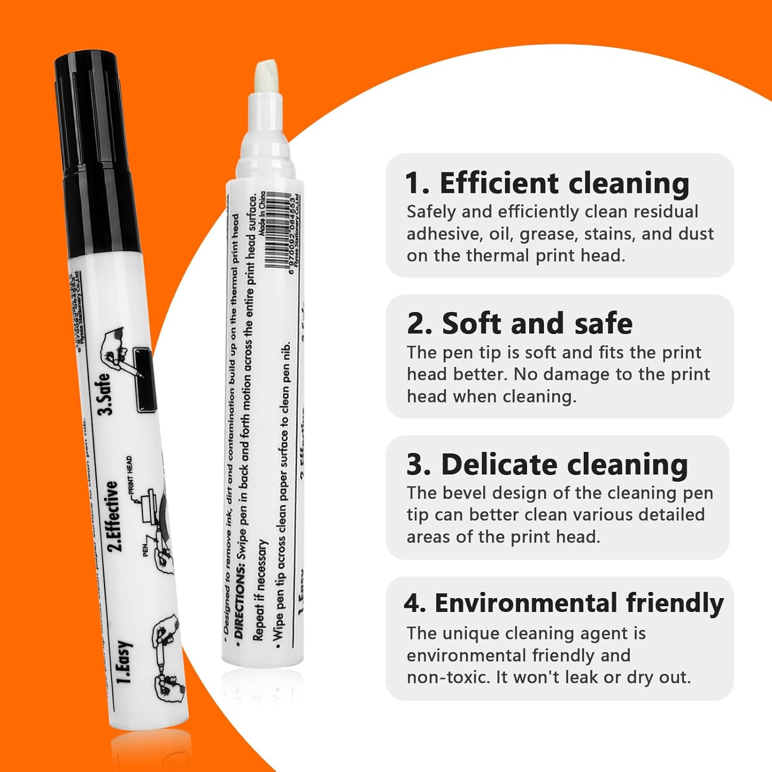 Efficient and excellent cleaning: The cleaning pen is designed to safely and efficiently clean residual glue, oil, grease, stains, dust on the thermal print head and adhesive residue on the transfer roller, improving the printing quality of the printer and allowing it prints cleaner and clearer. Maintain your thermal printer at peak performance and extend its life with cost-effective printer maintenance.