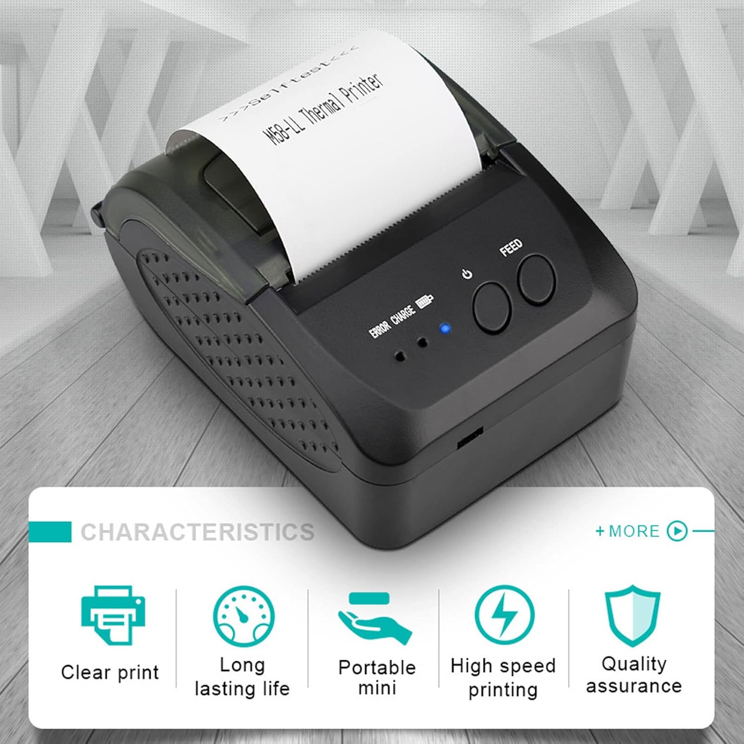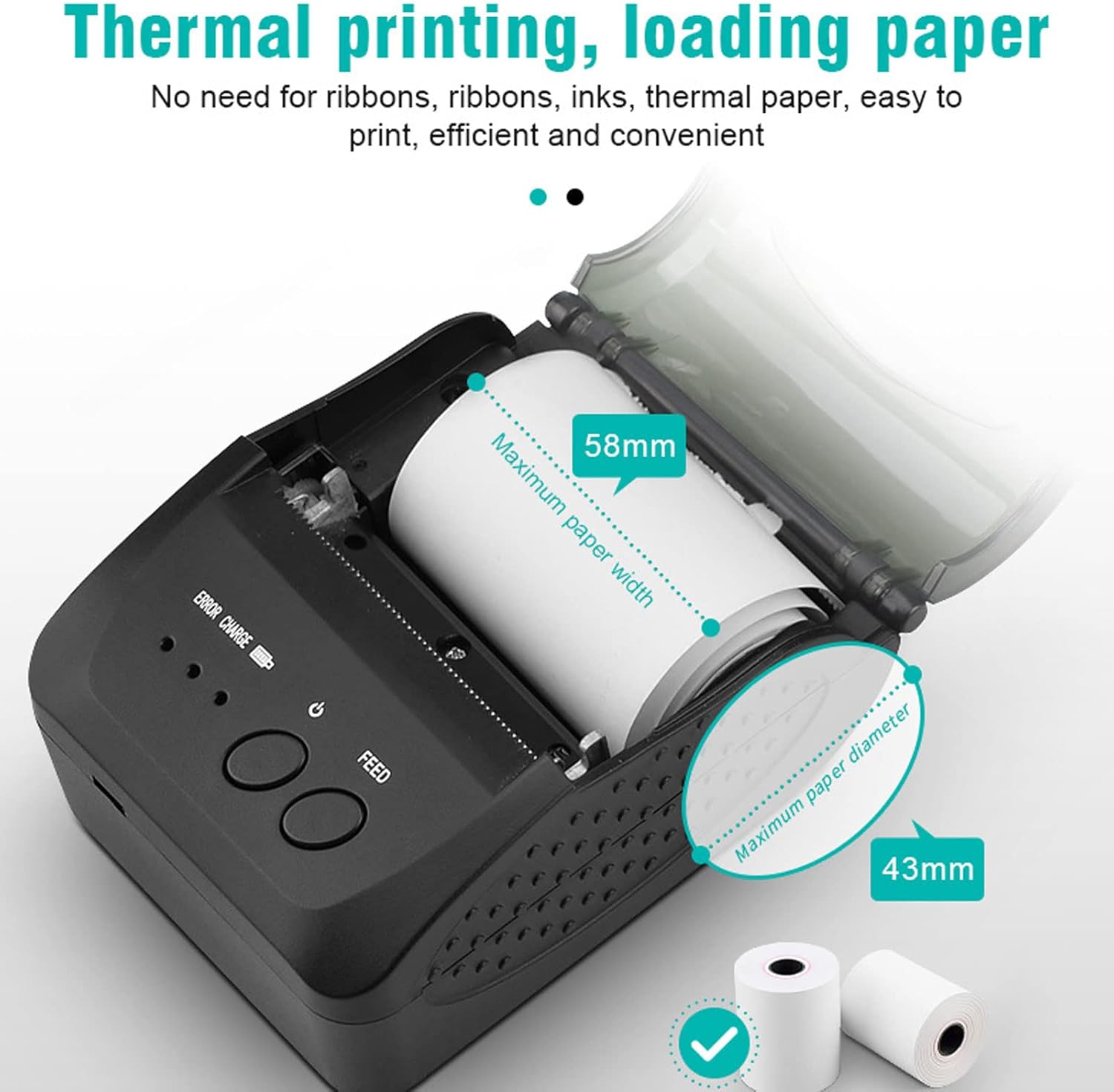 Thermal Receipt Printer, Bluetooth 58mm Mini Pos Printer with 90mm/s High Speed Printing, Support Android OS X Windows Systems