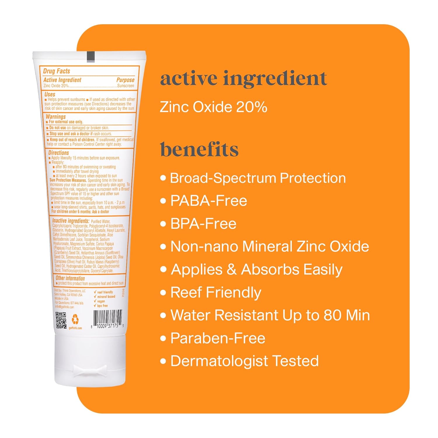 Thinkbaby Mineral Sunscreen, SPF 30 Clear Zinc Oxide Baby Sunscreen, 3 Fl Oz, Natural, Water Resistant Reef Safe Sunscreen, Vegan Broad Spectrum UVA/UVB Sun Screen for Sun Protection, Travel Size