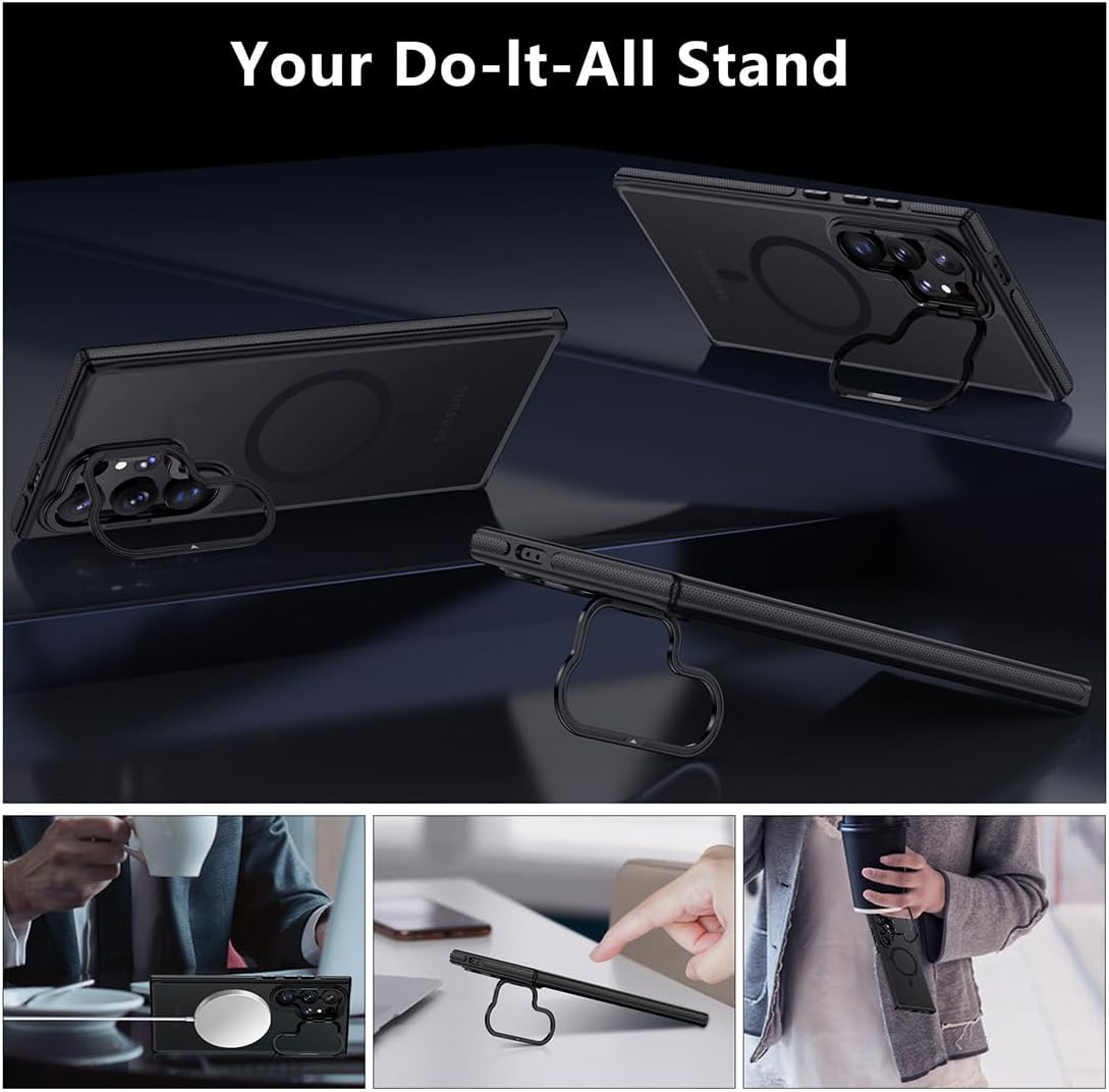 TIANNIUKE for Samsung Galaxy S24 Ultra Case, Compatible with MagSafe, Anty-Slip Grip,Military-Grade Protective, Adjustable Kickstand Phone Case, Magnetic Case (Black)