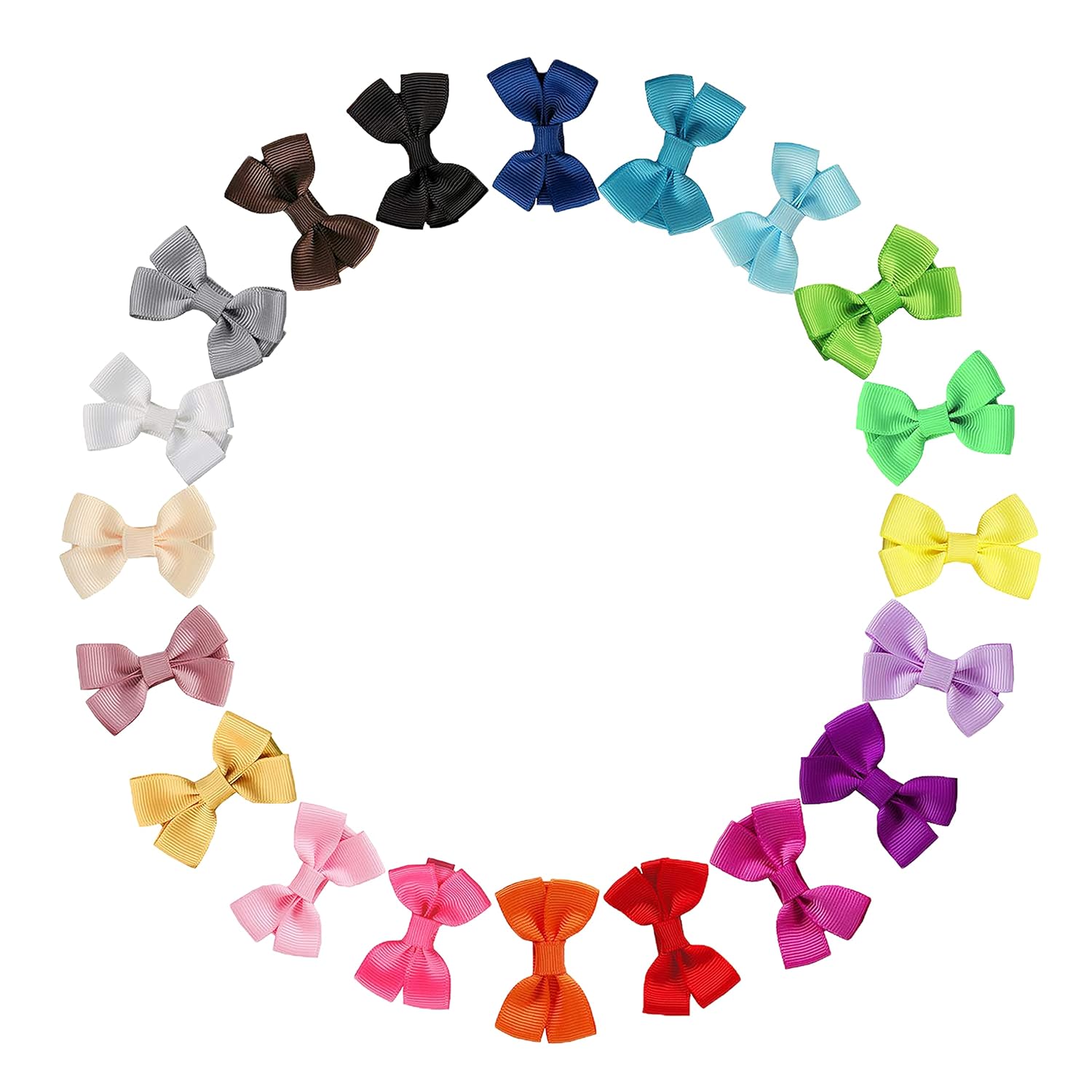 Set of 20pcs;Bow size:2″;Made from grosgrain ribbon;Atttached to fully lined clips.