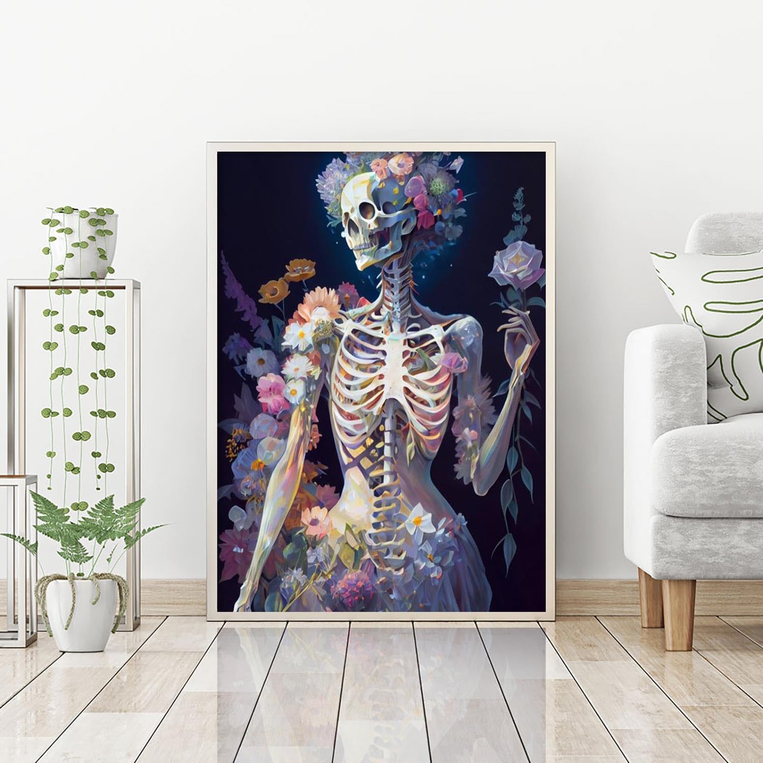 Tiwabb Diamond Painting Kits for Adults – Skeleton Flower Diamond Art Kits 5D Paintings with Diamond Dots Full Drill Gem Art and Crafts,for DIY Gift and Home Decor 12X16inch