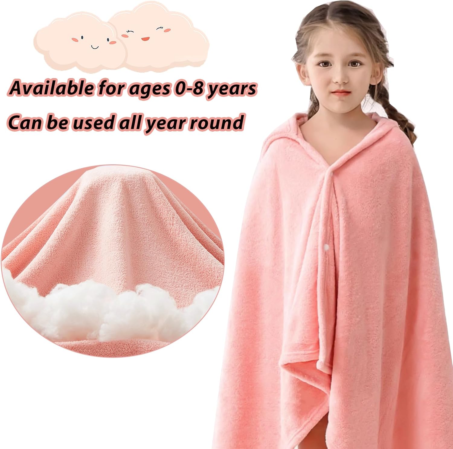 PORTABILITY: The size is 27.5″X55″ suitable for children, there is enough growing space for newborns and toddlers, perfect for 0-8 years old, it can also be used as a baby bath blanket. Buttons are fixed for easy wearing and won’t slip off your body. It can also be used as a beach towel and swimming towel.Hooded towel for drying after bath/swim.