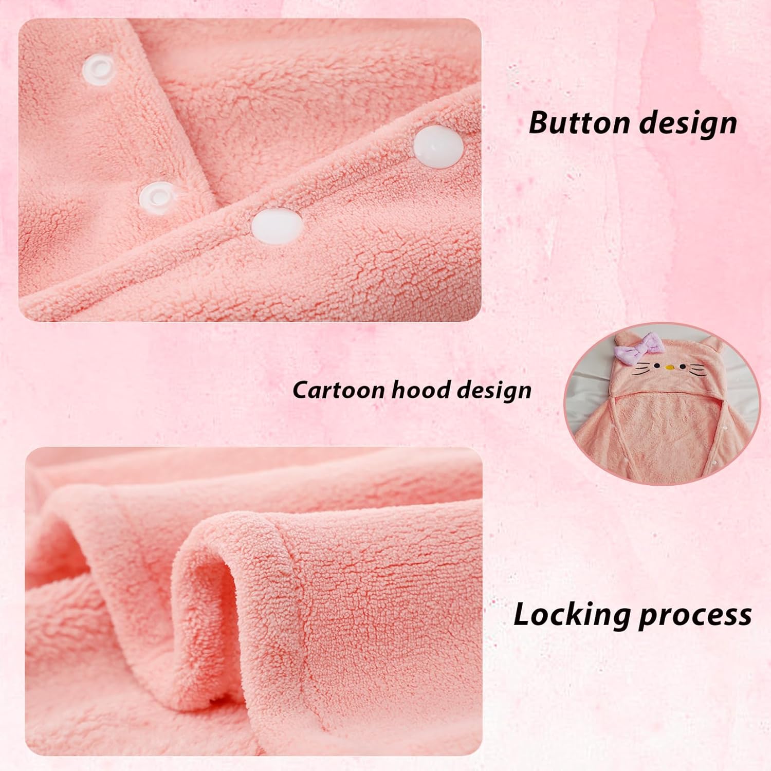 Toddler Bath Towel Baby Towels with Hood 27.5″X55″ Ultra Absorbent Soft Bathrobe Blanket Kids Shower Towel for Girls and Boys(Pink Cat)