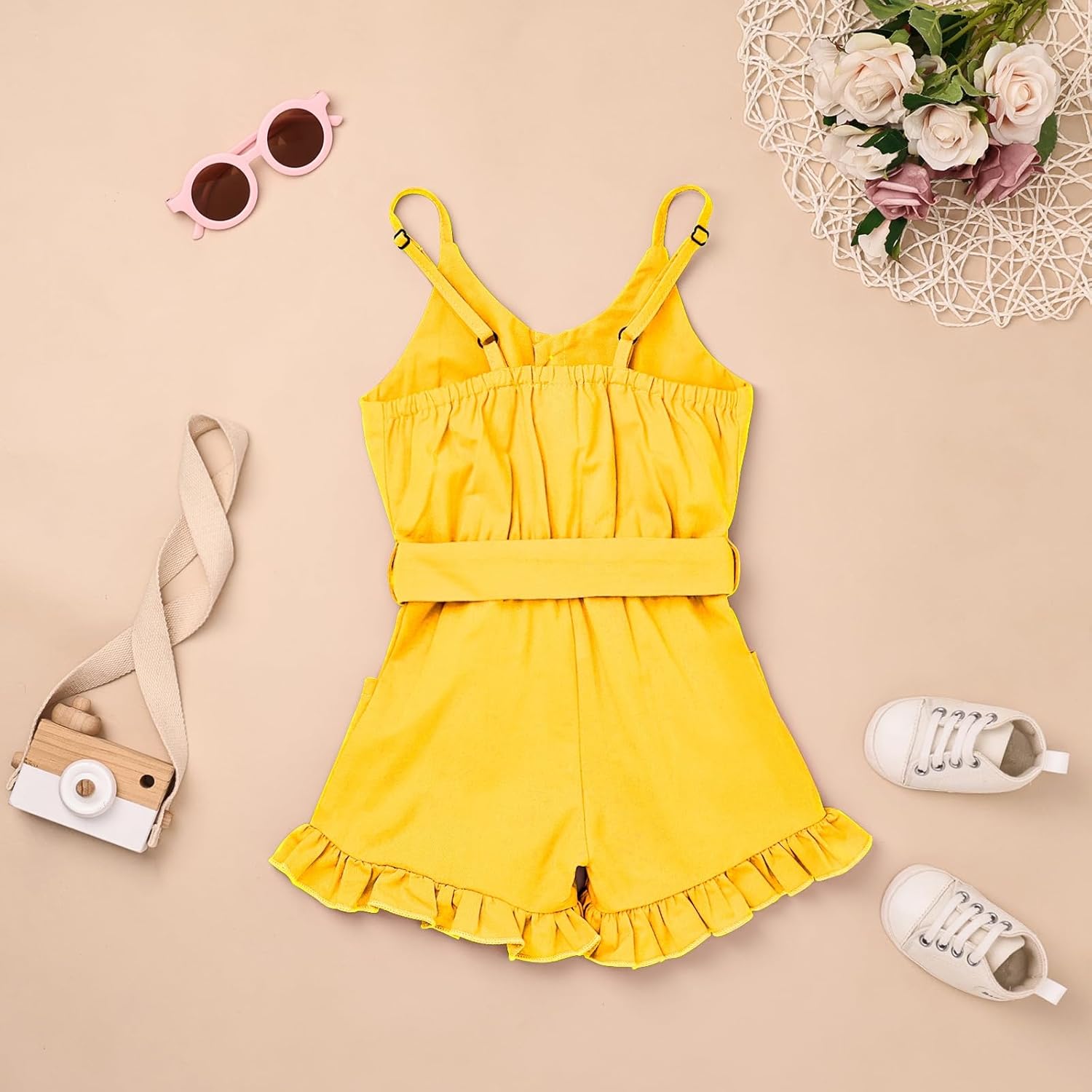 Toddler Girl Clothes Baby Adjusatble Strap Sleeveless One-Piece Romper Ruffle Summer Pocket Jumpsuit 6 months to 5T