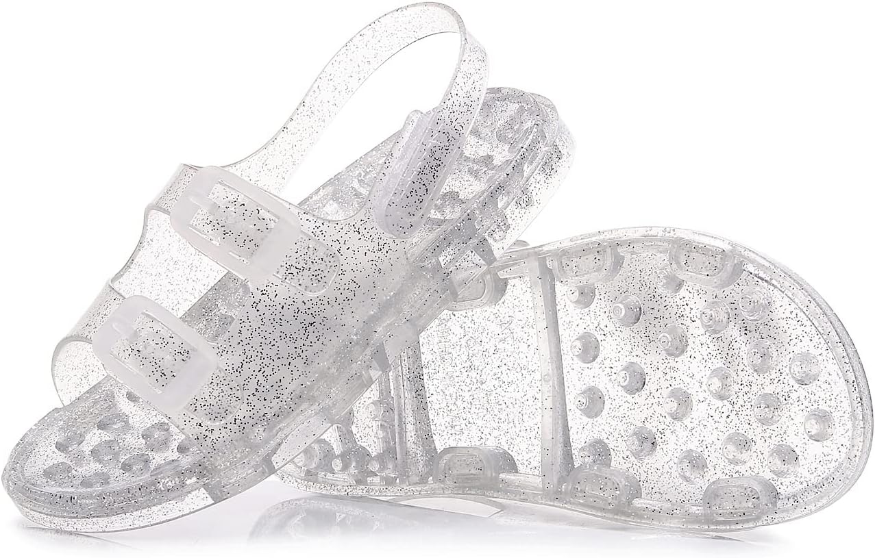 Jelly Shoes for Toddler Girls Summer Beach Retro Jellies Sandals Little Kids Glitter Soft Closed Toe Princess Dress Flat