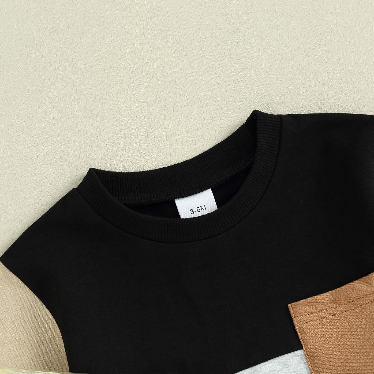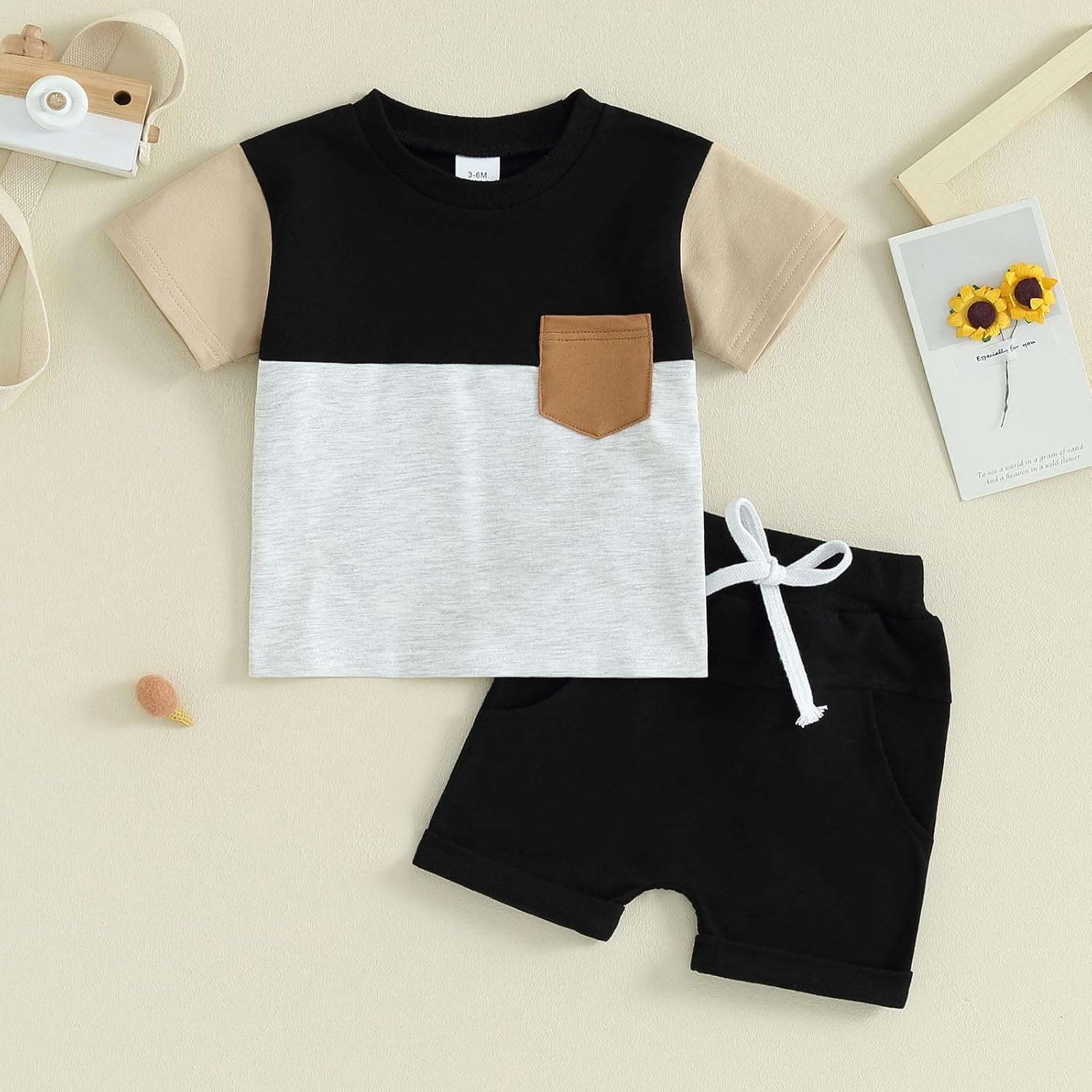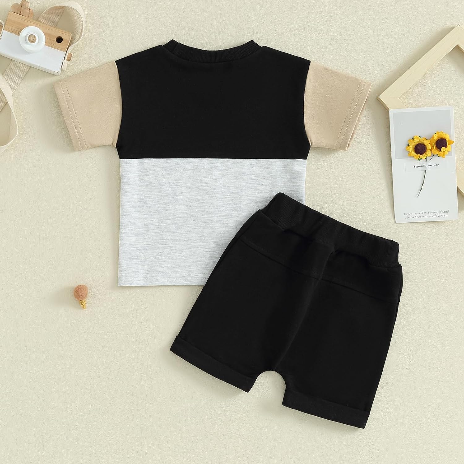 Toddler Infant Baby Boy Summer Outfits Color Block Short Sleeve T Shirt and Shorts Set
