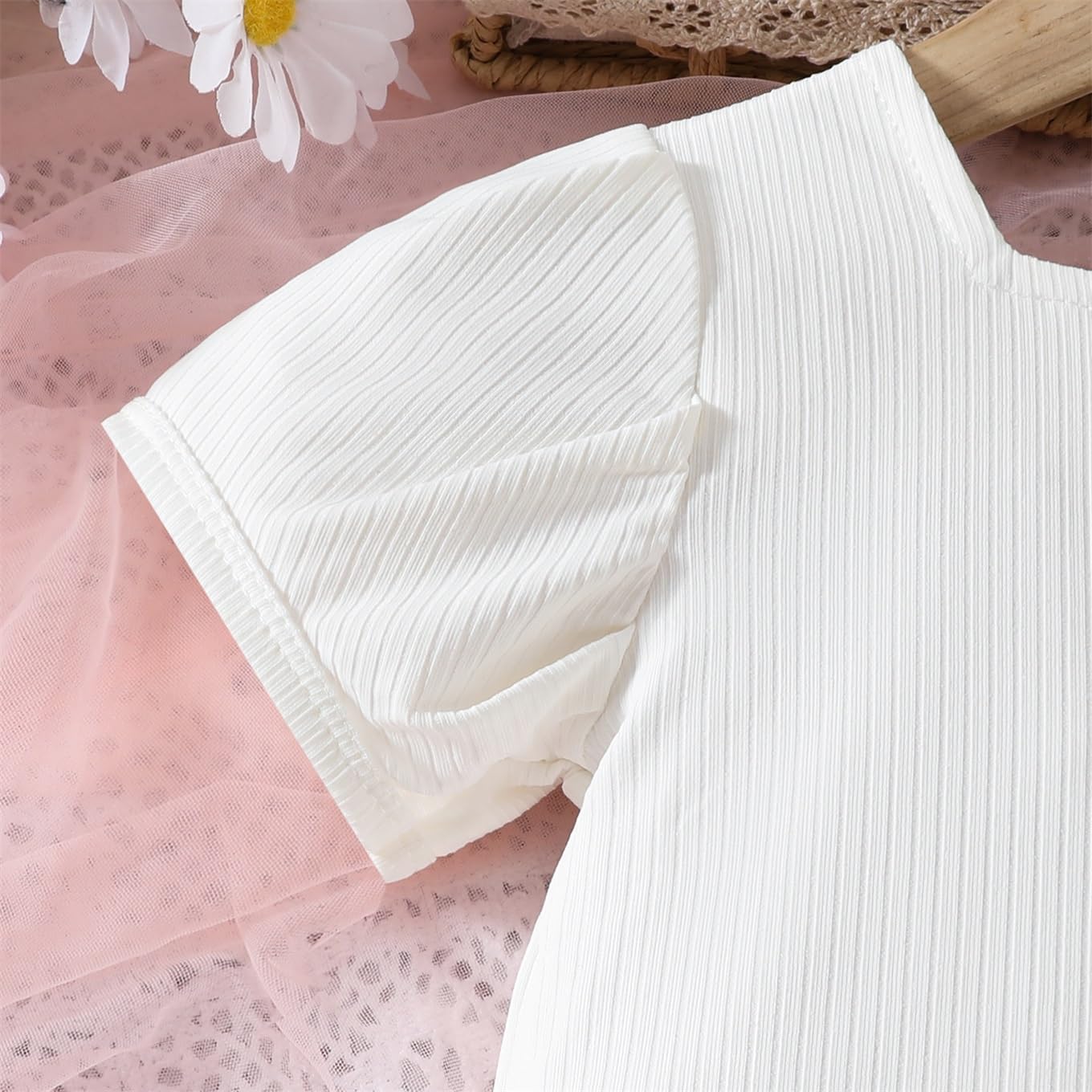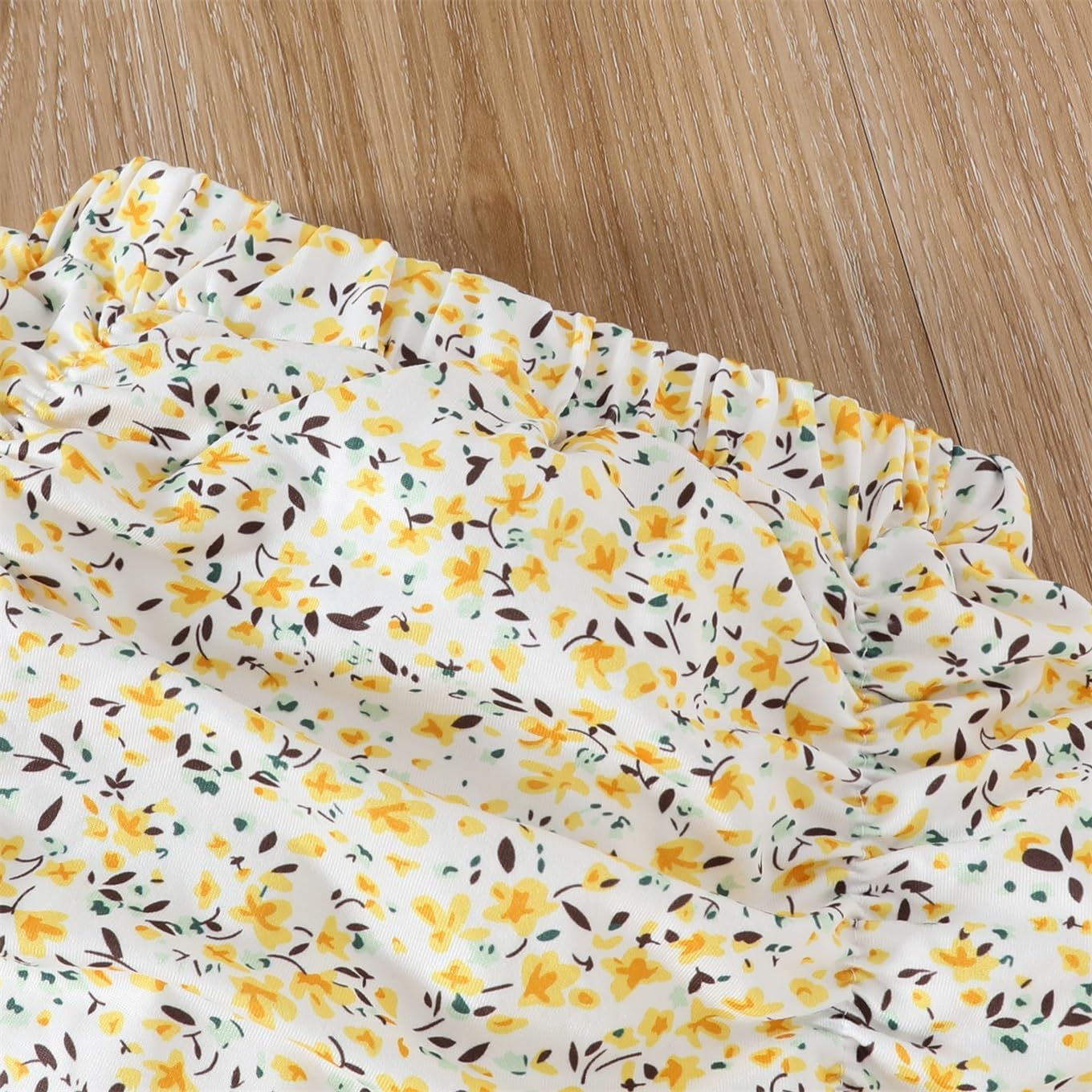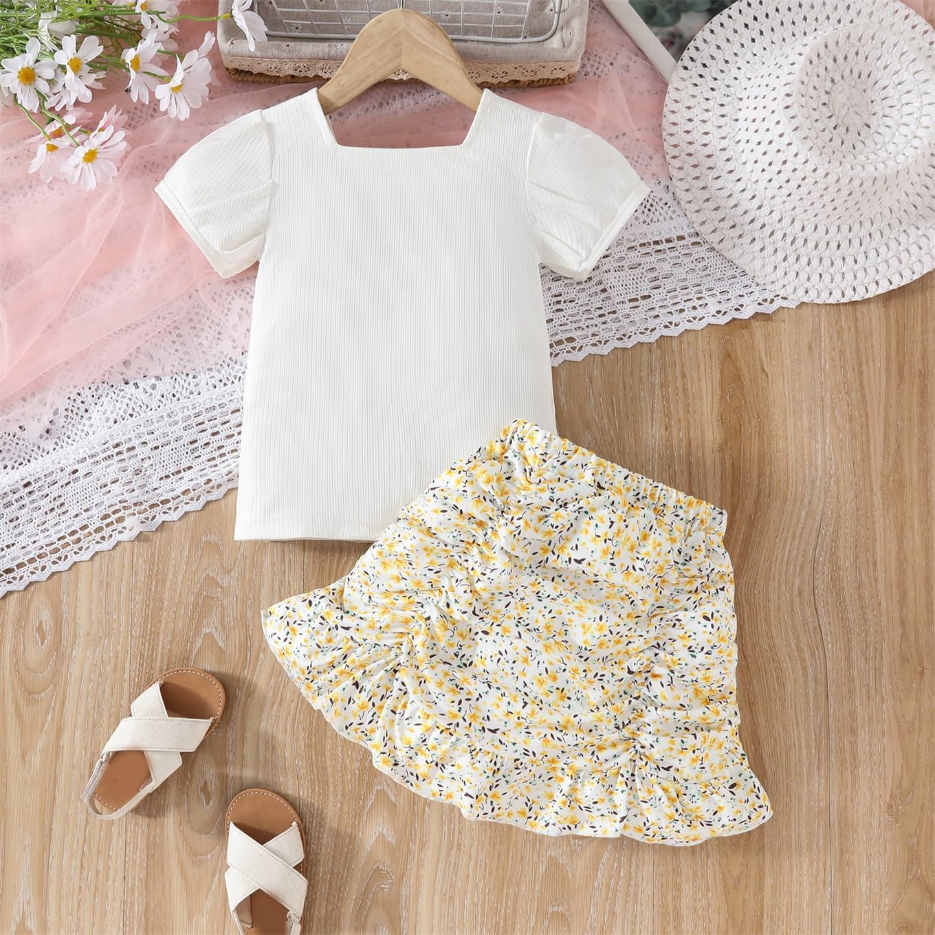 Toddler Kids Girl Clothes Square Neck T-Shirt Top+ Floral Skirt 2pcs Summer Girl’s Skirt Set