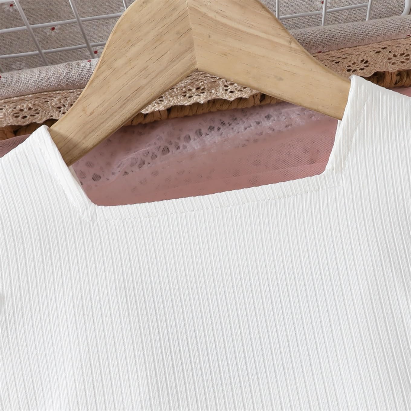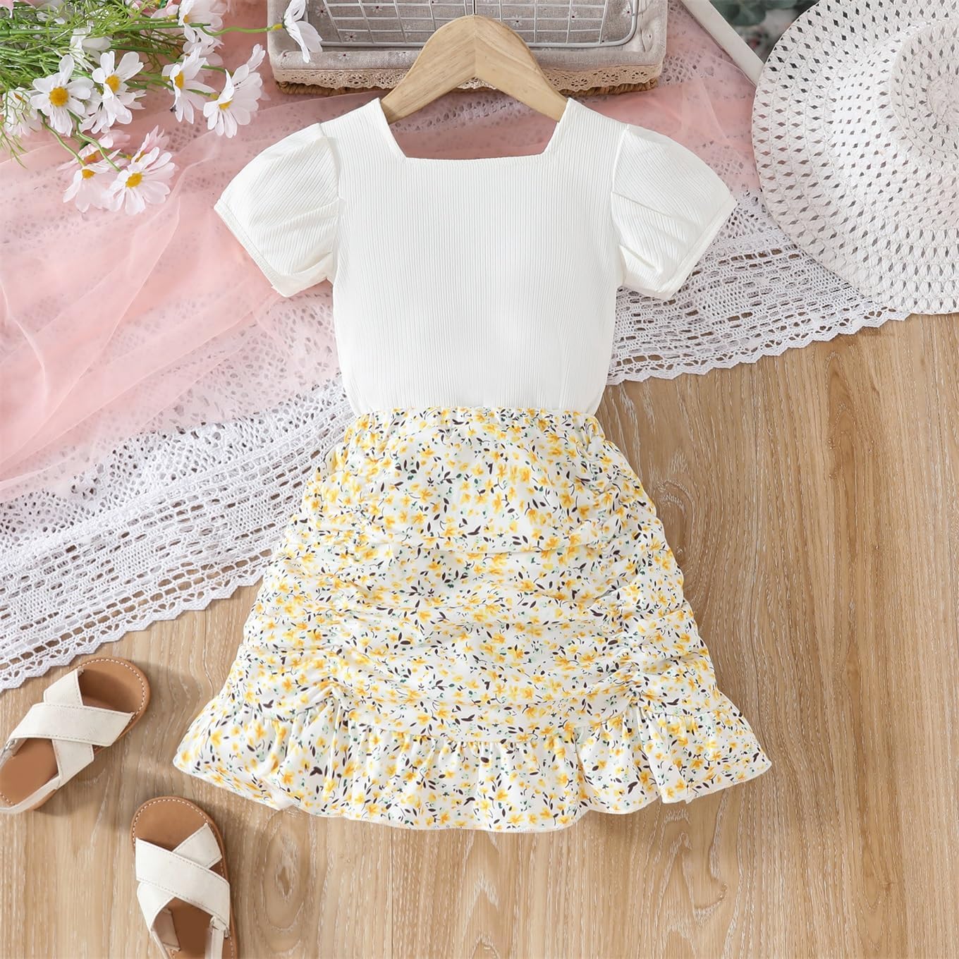 Toddler Kids Girl Clothes Square Neck T-Shirt Top+ Floral Skirt 2pcs Summer Girl’s Skirt Set