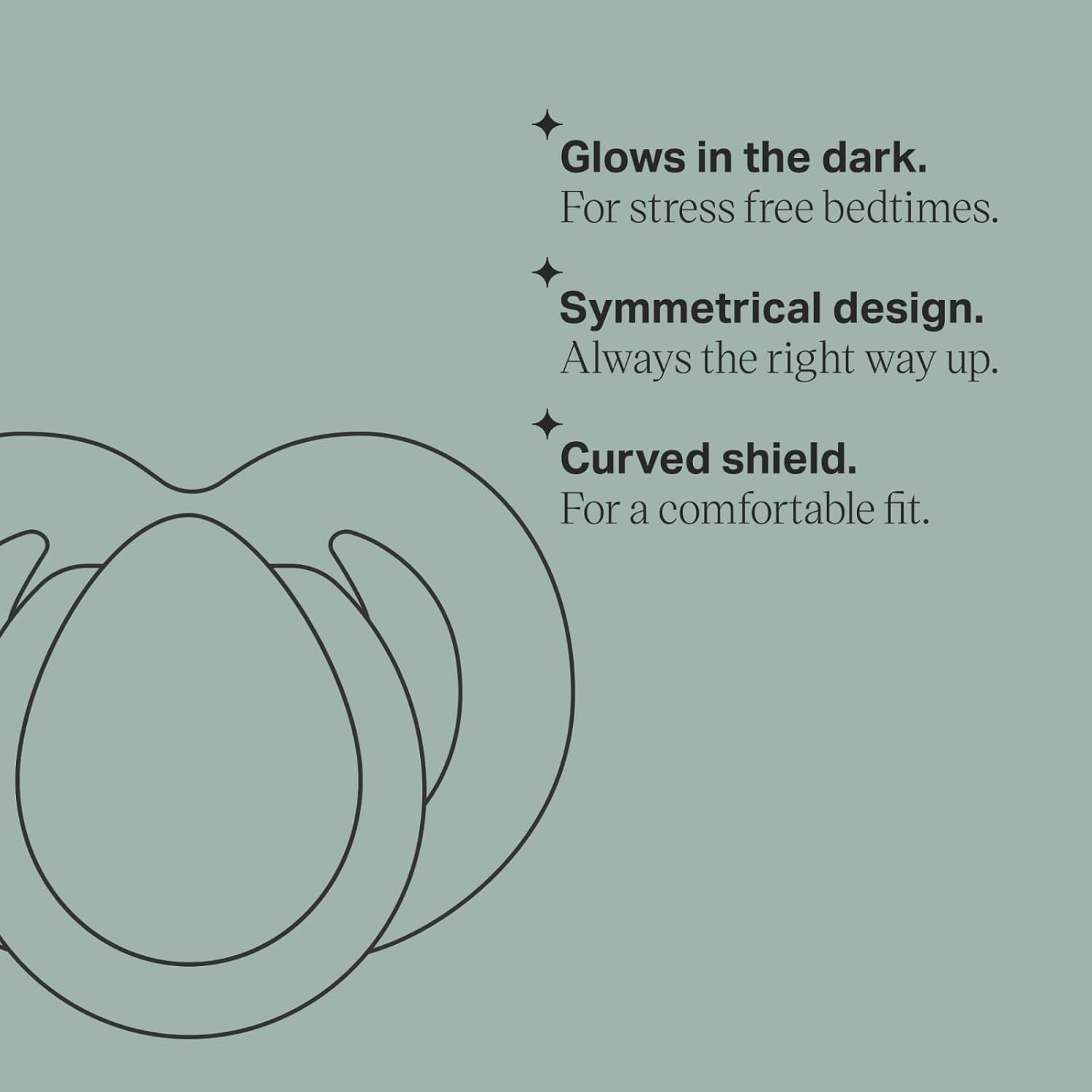 Glow in the dark: The pacifier handle recharges in daylight to glow in the dark, for stress free bedtimes