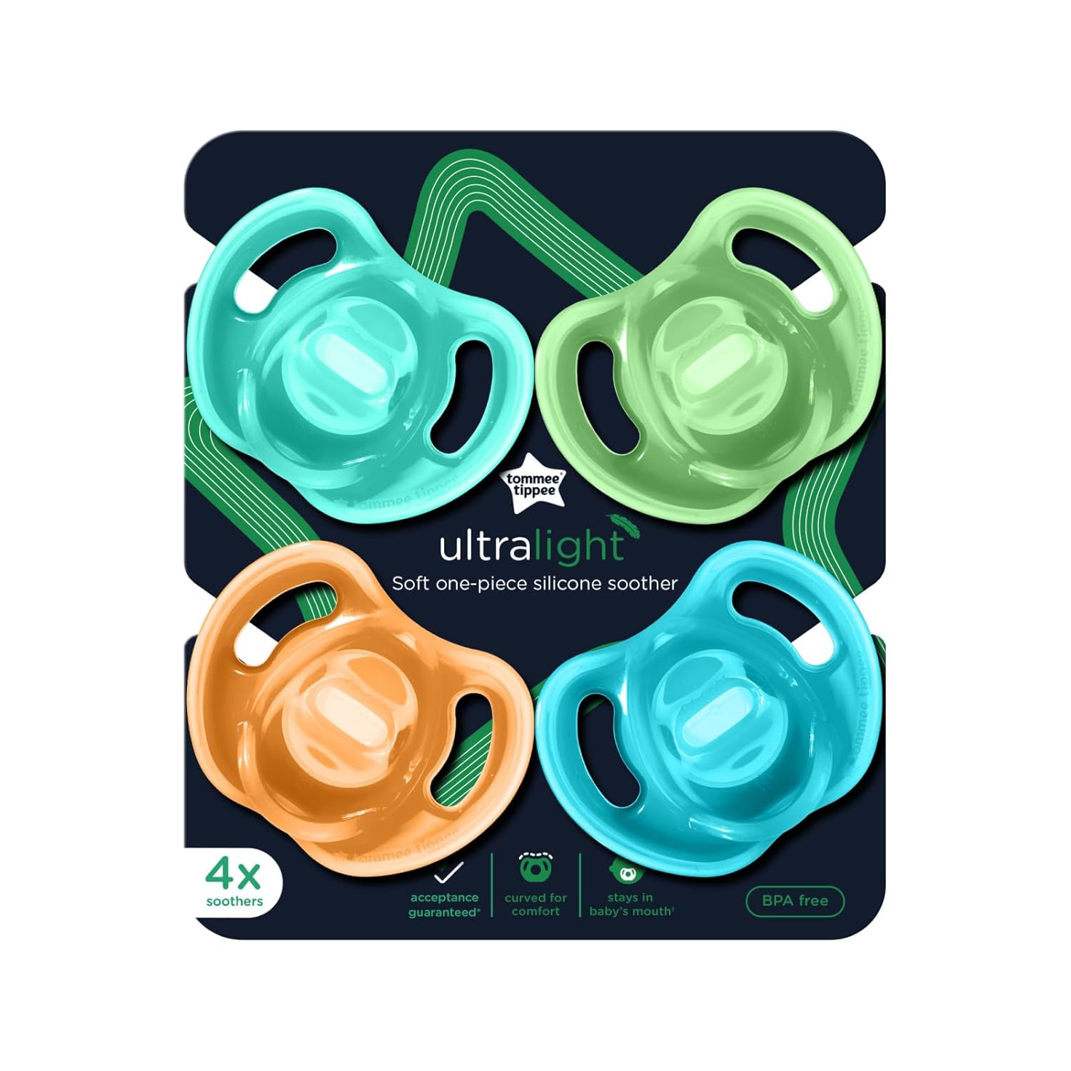 Tommee Tippee Ultra-light Silicone Pacifier, Symmetrical One-Piece Design, BPA-Free Silicone Binkies, 18-36 months, Pack of 4 Pacifiers