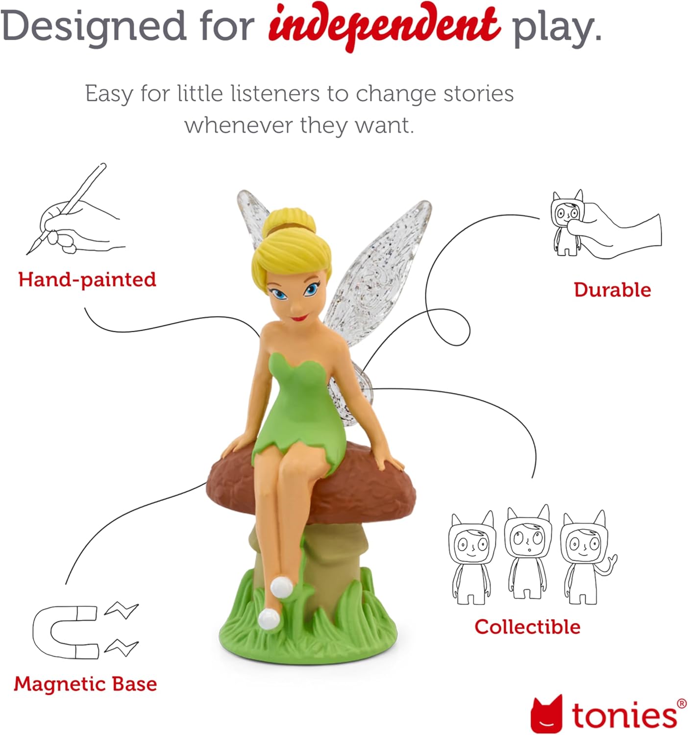 Tonies is designed for the way kids play with intuitive controls that young kids can use independently. Our growing selection of collectable Tonies – from Disney to Sesame Street to PAW Patrol – provides a large library of stories, songs, and educational content for any occasion.