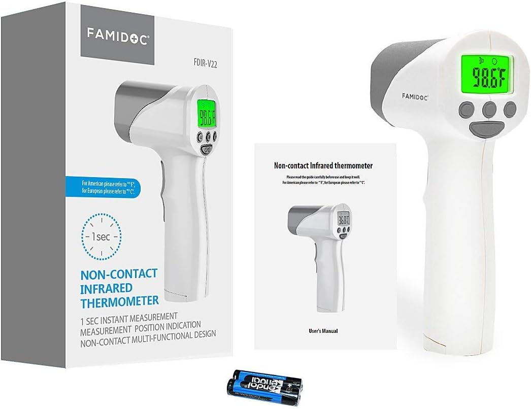 Touchless Thermometer for Adults,Famidoc Non Contact Infrared Thermometer for Kids and Baby No Touch Infrared Forehead Thermometer for Fever Smart Temperature with Digital LCD Display Instant Results