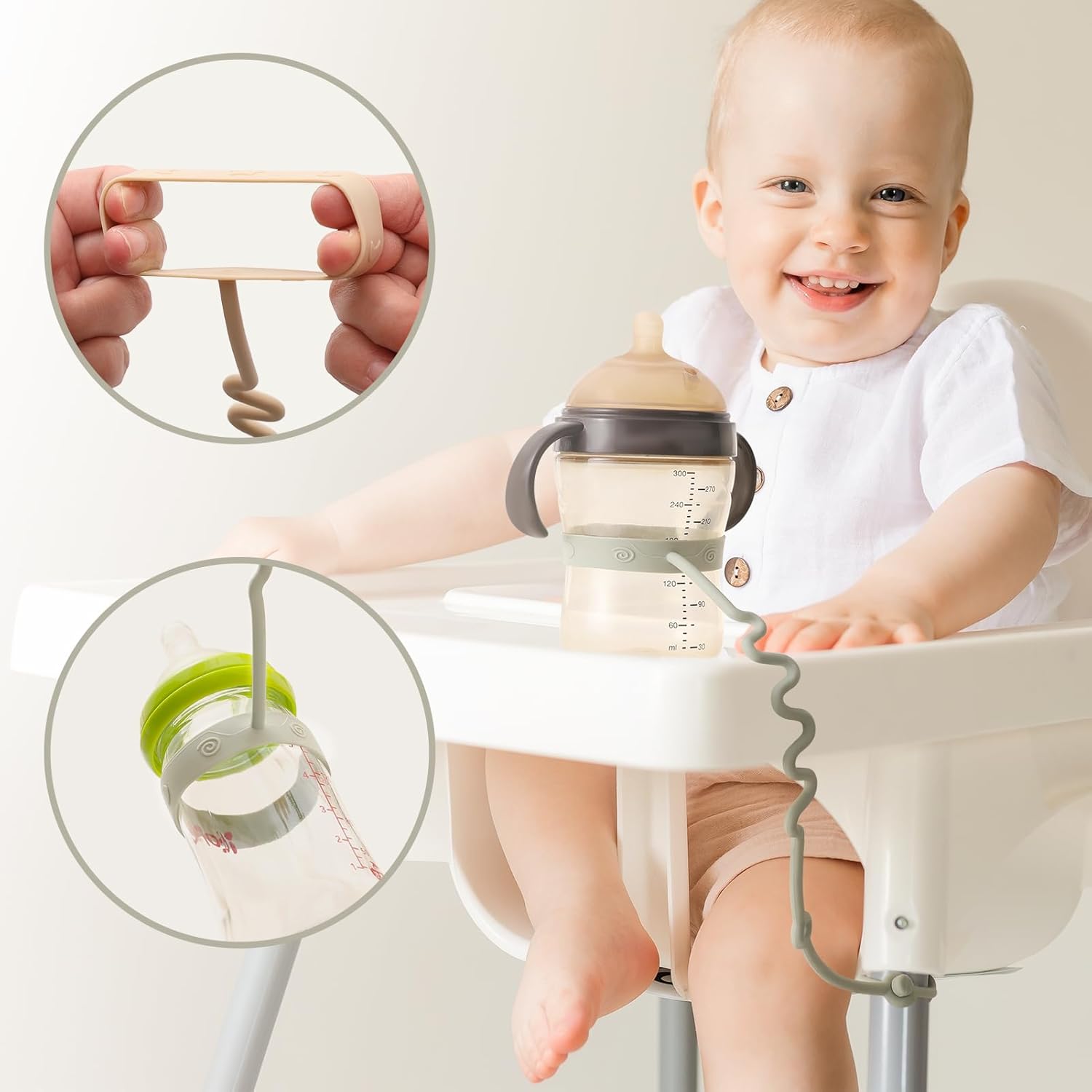 Crafted from 100% food grade silicone, our product is entirely BPA free, guaranteeing the safety of your little one. You can effortlessly affix it to bottles, strollers, car seats, high chairs, and more, enabling quick and easy use both at home and on the go.