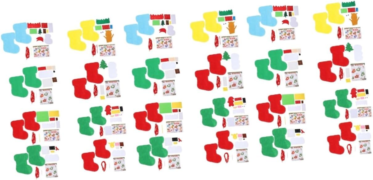 TOYANDONA 24 Sets Christmas Stocking Sewing Kit Christmas Socks DIY Crafts Toy for Kids Crafts for Kids Preschool Hand Craft Kits Xmas Kindergarten DIY Material Kits Sock Sewing Material