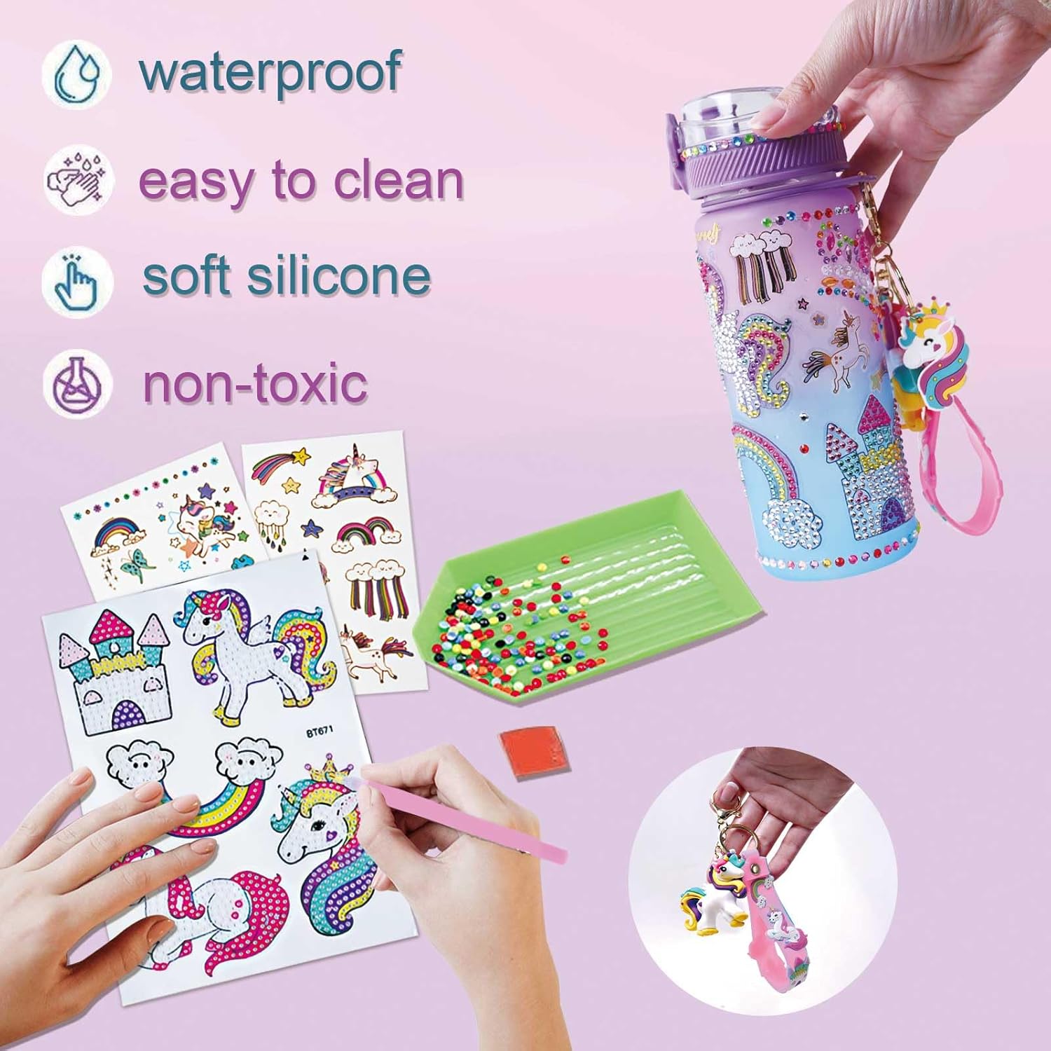 Toys for 3-12 Year Old Girls Kids, Decorate Your Own Water Bottle Kits for Girls, Unicorn Gem Diamond Painting Arts and Crafts Birthday Gifts for 3 4 5 6 7 8 9 10 Year Old Girls (Unicorn 600ml)