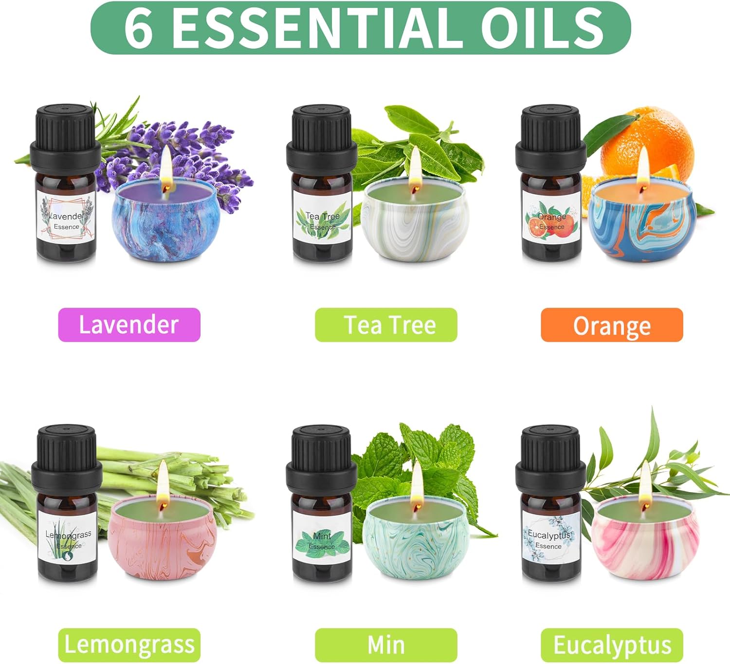 ✨ MAKING COLORFUL SCENTED CANDLES – The candle kit comes with 6* premium Pure Essential Oils: Lavender, Tea Tree, Orange, Lemongrass, Mint and Eucalyptus, and 4* Dyes: Blue, Red, Yellow & Purple. Fully unleash your creativity and make these colorful aromatherapy candles the best decor for your living room, bedroom, dining room,office and more.