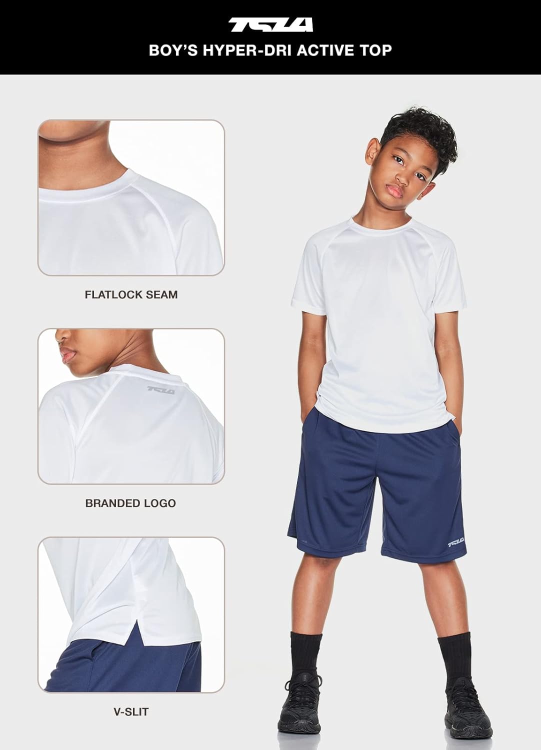 TSLA 1 or 2 Pack Kids Youth Running Shirts, Cool Dry Fit Gym Sports Workout Shirts, Athletic Short Sleeve T-Shirts